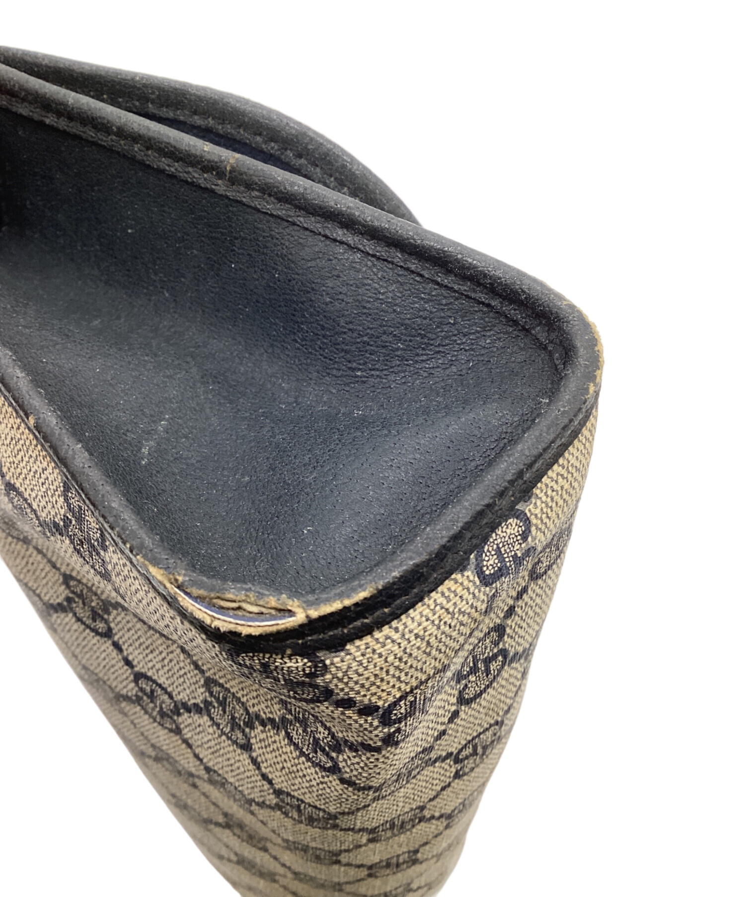 | スタッフコメント | PVCによる「GG」柄、ネイビーをベースにシェリーラインがアクセントのらしさあるお品物です。 |
