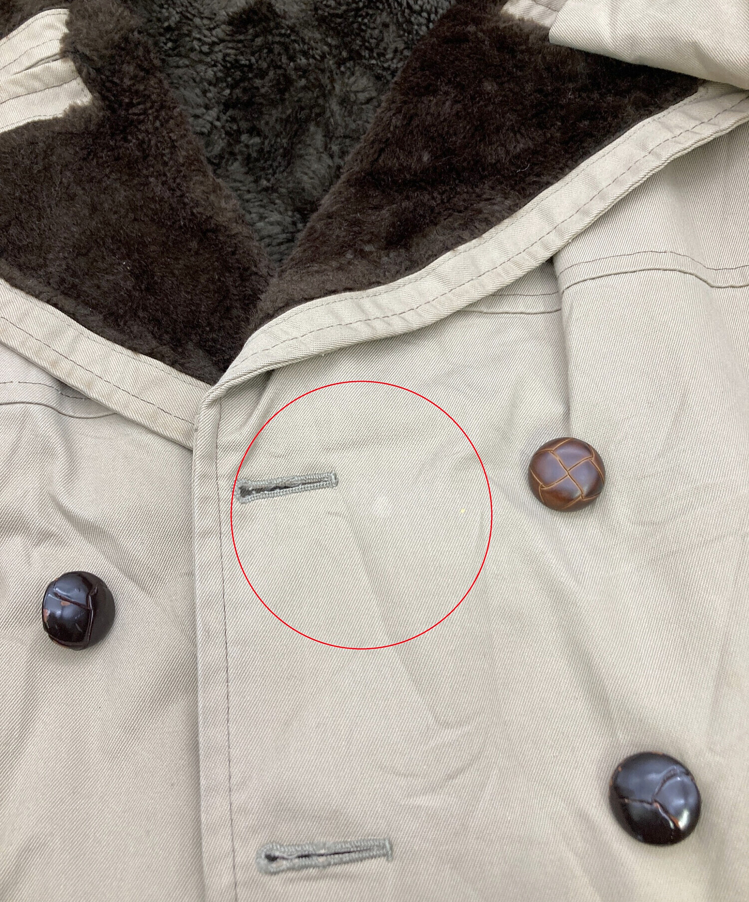 目立つシミや汚れ、におい等がある場合は商品画像や説明文にて極力表記させていただいておりますが、中古品という商品の特性上、全ての瑕疵や不備、洋服直し箇所を撮影・記載をすることは難しくなっております。また、ほとんどのアイテムは店頭と併売しておりますため、出品掲載時からコンディションが変動している場合もございます。あらかじめご了承くださいませ。