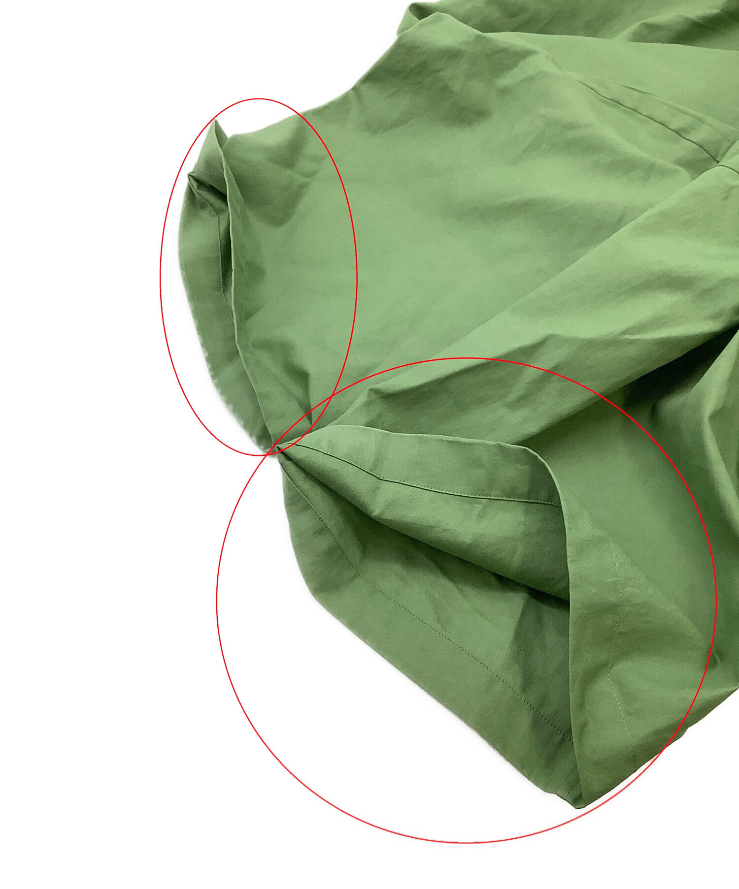 目立つシミや汚れ、におい等がある場合は商品画像や説明文にて極力表記させていただいておりますが、中古品という商品の特性上、全ての瑕疵や不備、洋服直し箇所を撮影・記載をすることは難しくなっております。また、ほとんどのアイテムは店頭と併売しておりますため、出品掲載時からコンディションが変動している場合もございます。あらかじめご了承くださいませ。