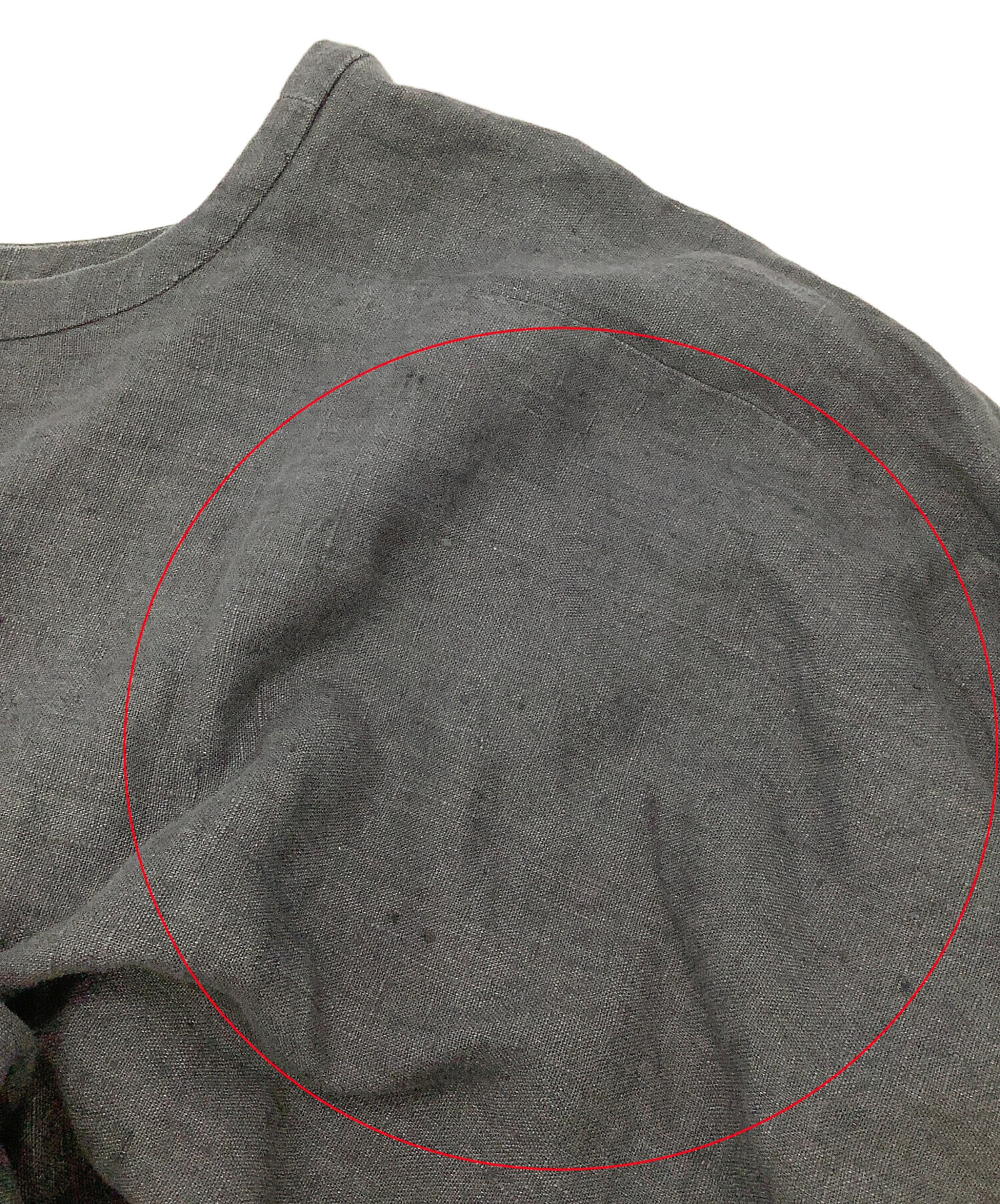 目立つシミや汚れ、におい等がある場合は商品画像や説明文にて極力表記させていただいておりますが、中古品という商品の特性上、全ての瑕疵や不備、洋服直し箇所を撮影・記載をすることは難しくなっております。また、ほとんどのアイテムは店頭と併売しておりますため、出品掲載時からコンディションが変動している場合もございます。あらかじめご了承くださいませ。