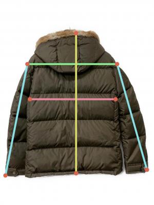 | 素材 | 繊維 83% 表地/本体: ポリエステル 100% ファー部分/表地: 毛皮 パッチ/部分: 牛革 パッチ/中わた: ダウン 95% : フェザー 5% 裏地/胴: キュプラ ポリエステル 袖: キュプラ |