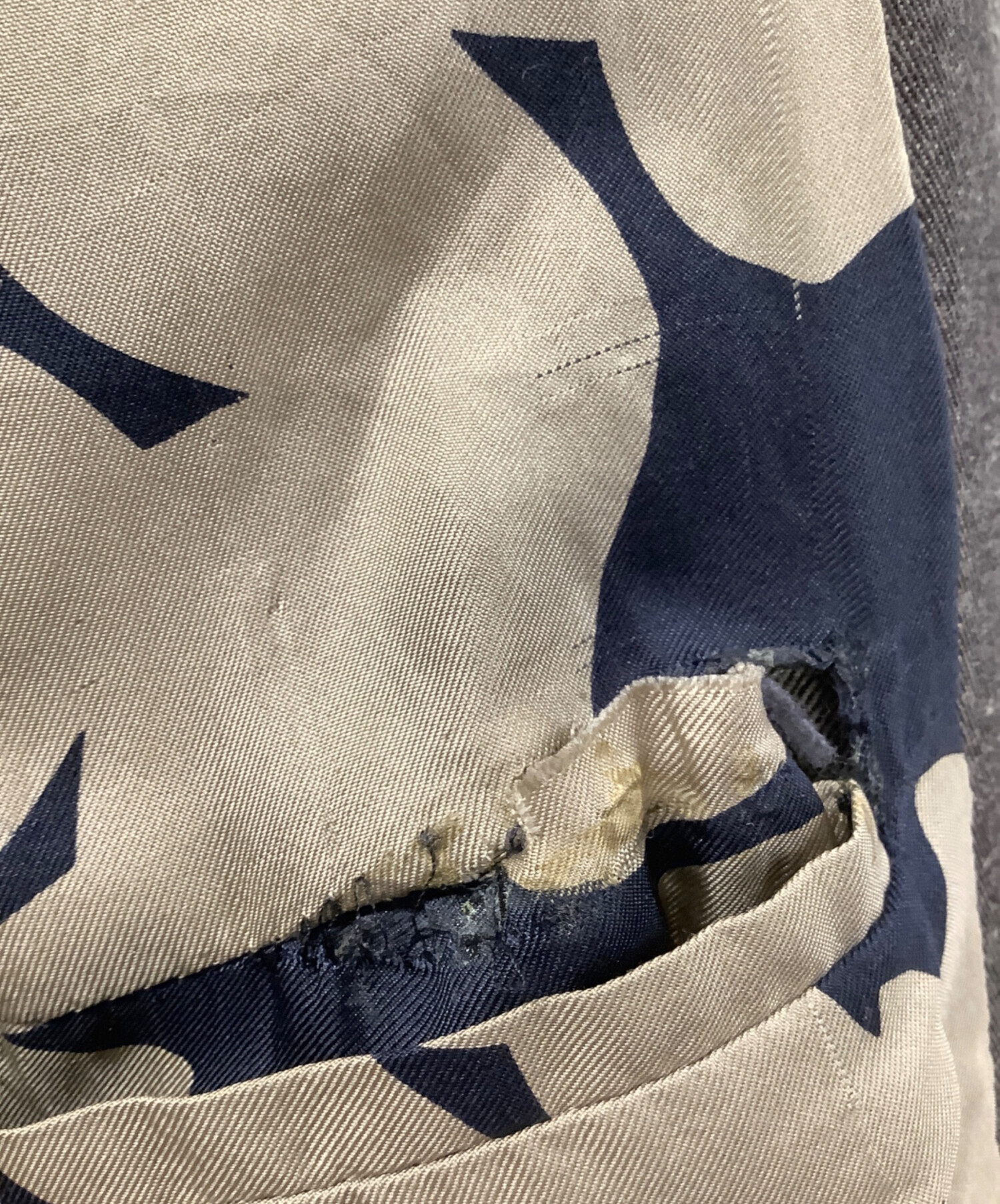 目立つシミや汚れ、におい等がある場合は商品画像や説明文にて極力表記させていただいておりますが、中古品という商品の特性上、全ての瑕疵や不備、洋服直し箇所を撮影・記載をすることは難しくなっております。また、ほとんどのアイテムは店頭と併売しておりますため、出品掲載時からコンディションが変動している場合もございます。あらかじめご了承くださいませ。