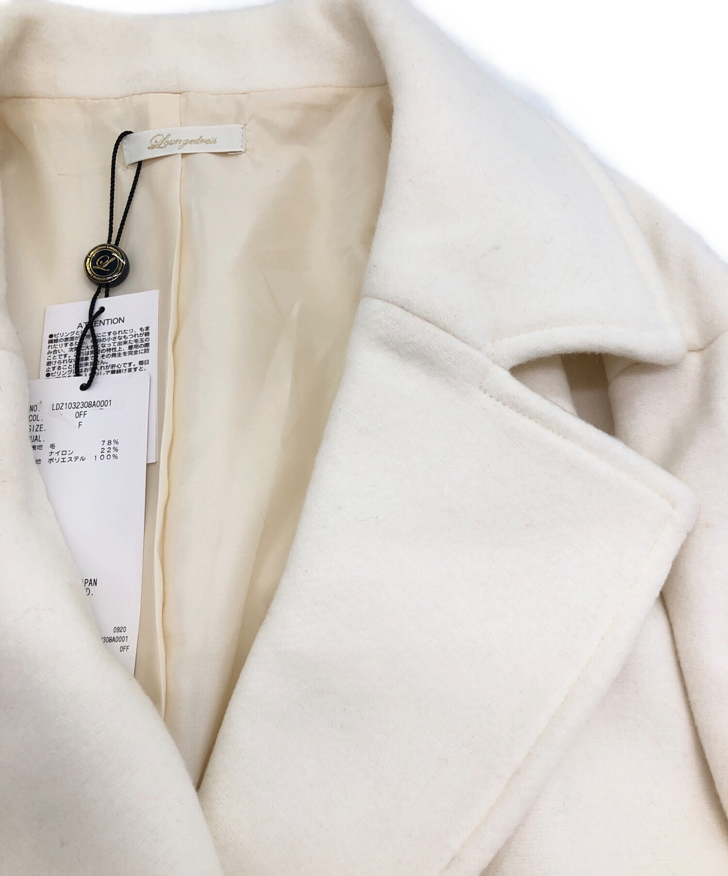 • Loungedress(ラウンジドレス)Loungedress (ラウンジドレス) Pコート ホワイト サイズ:Freeの古着・服飾アイテム シミヨゴレがございます。