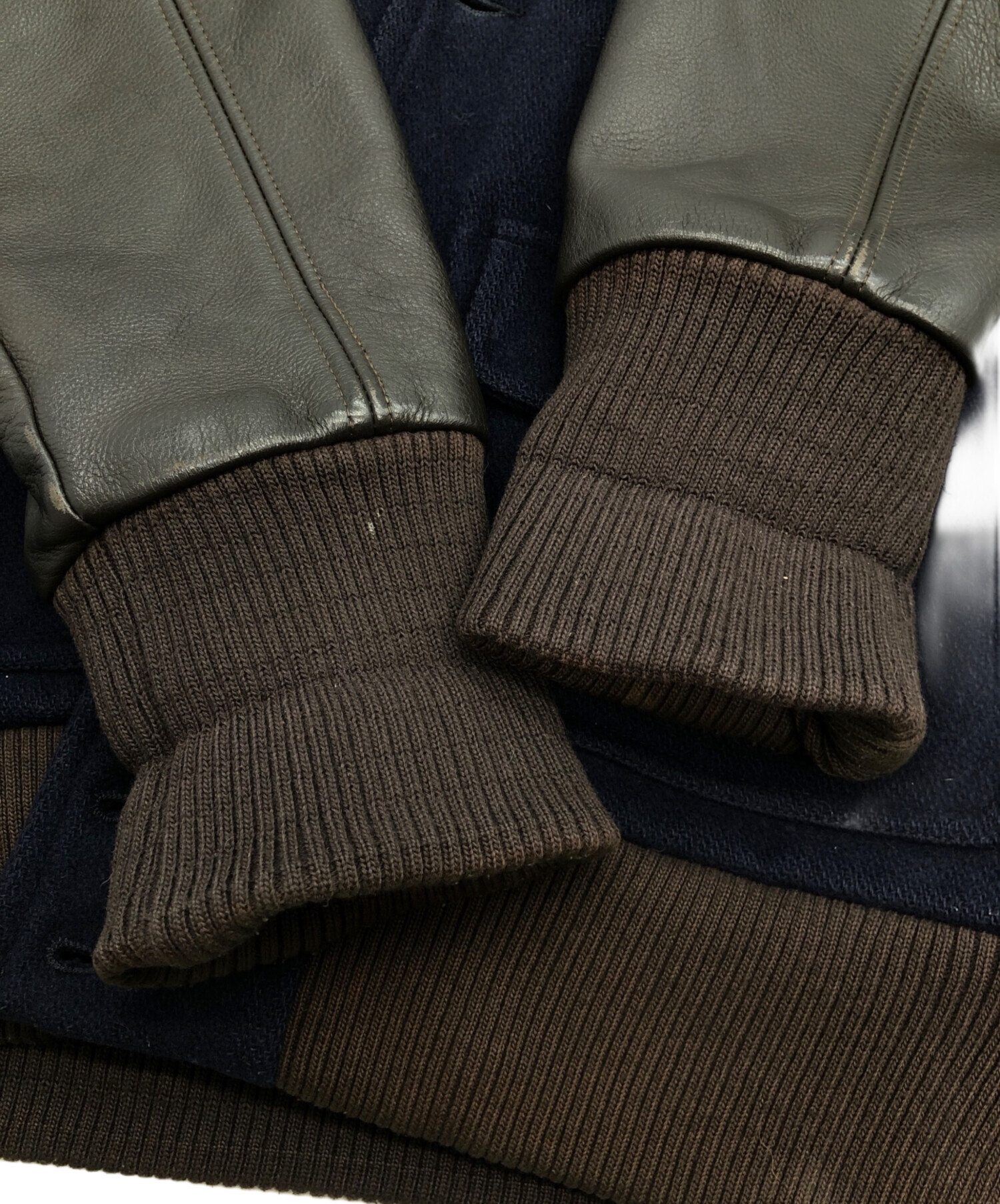 | 素材 | 表地:毛80%、ナイロン20% 袖:牛革 裏地:ポリエステル65%、レーヨン35% |
