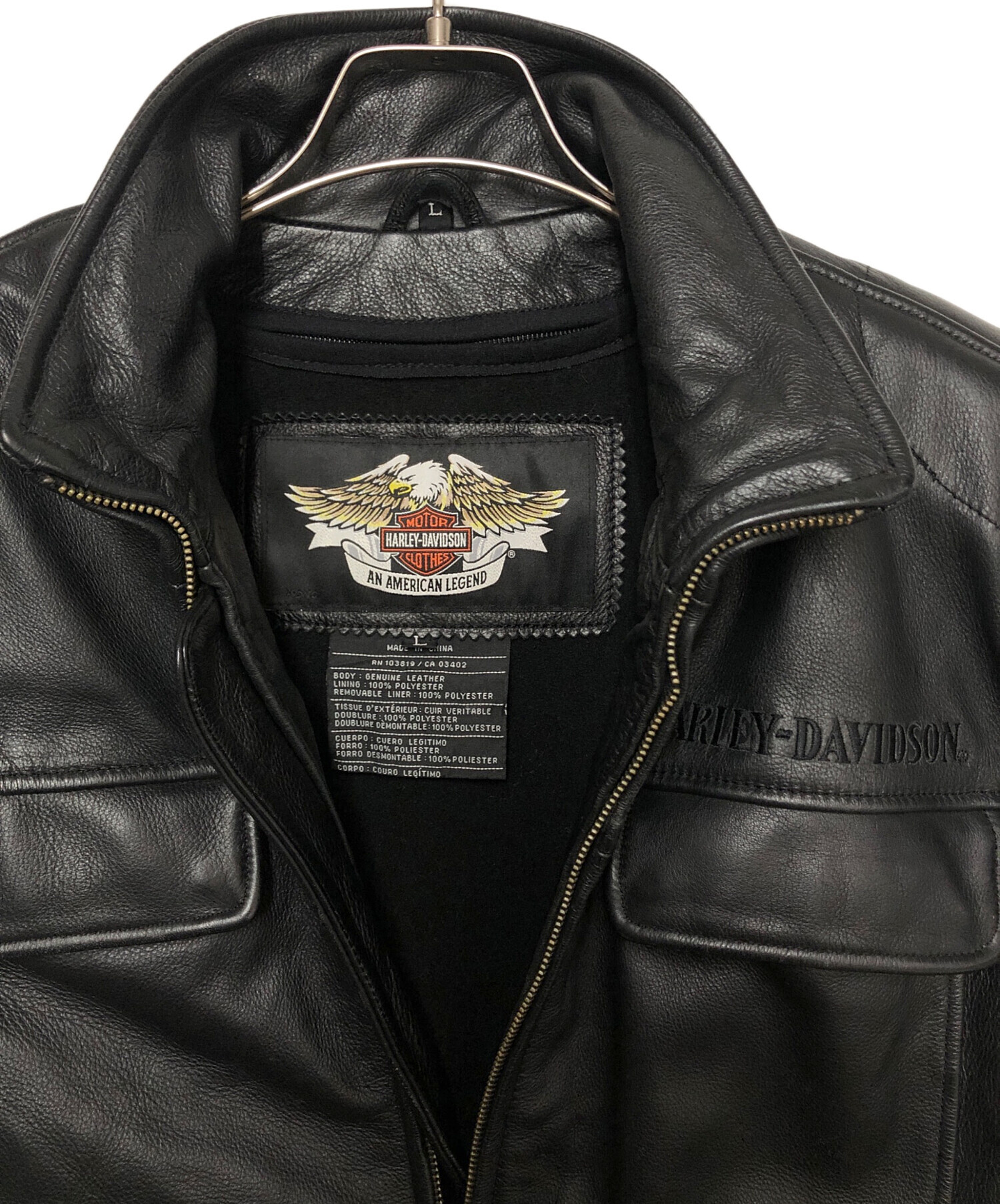• HARLEY-DAVIDSON(ハーレーダビッドソン)HARLEY-DAVIDSON (ハーレーダビッドソン) シングルライダースジャケット ブラック サイズ:Lの古着・服飾アイテム ファスナー金具スレ、変色有