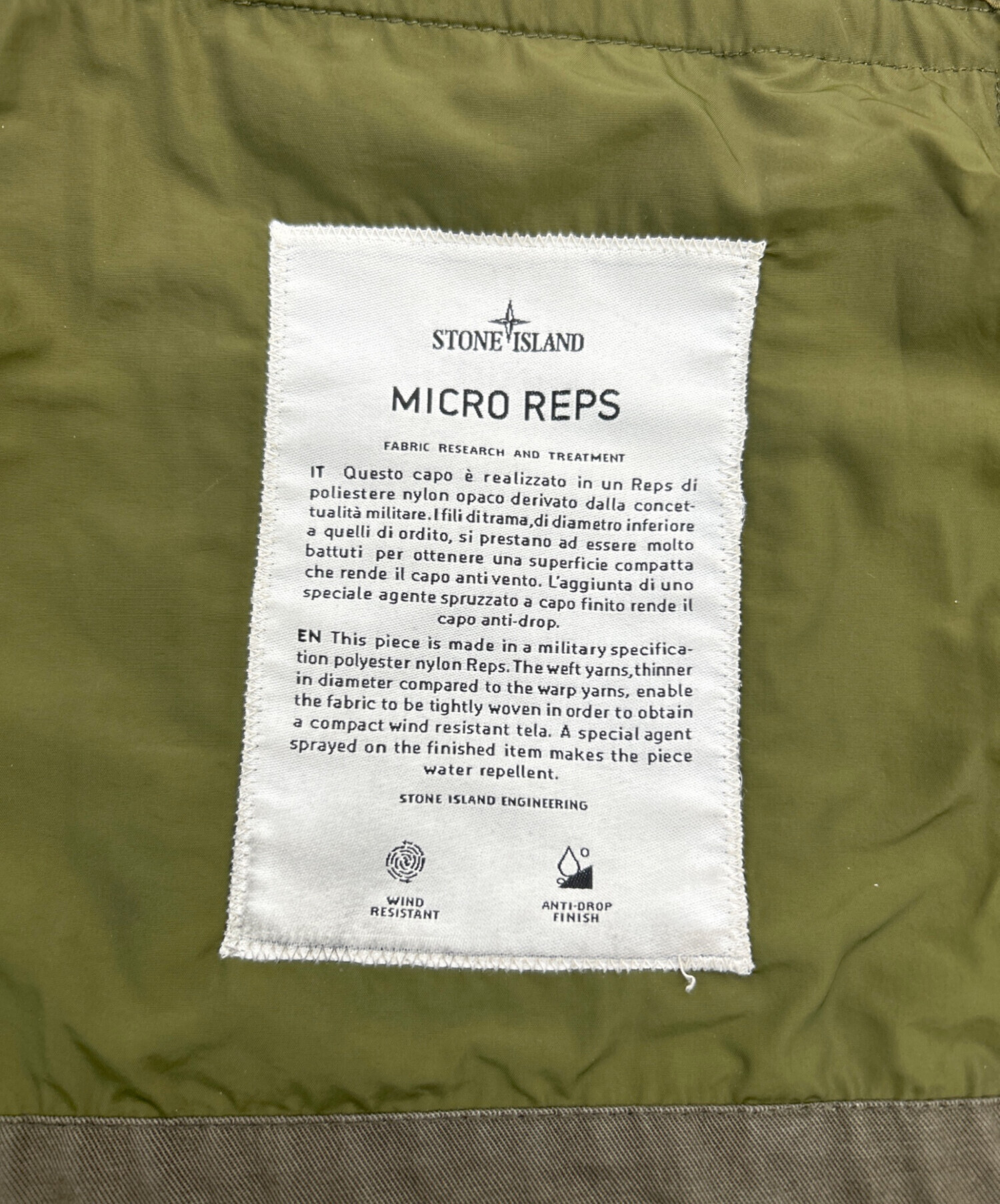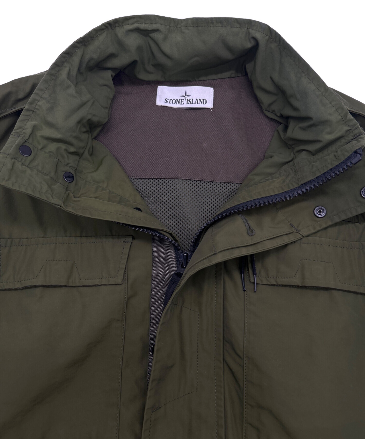 • STONE ISLAND(ストーンアイランド)STONE ISLAND (ストーンアイランド) ナイロンジャケット オリーブ サイズ:SIZE Mの古着・服飾アイテム ボタンホールホツレ有