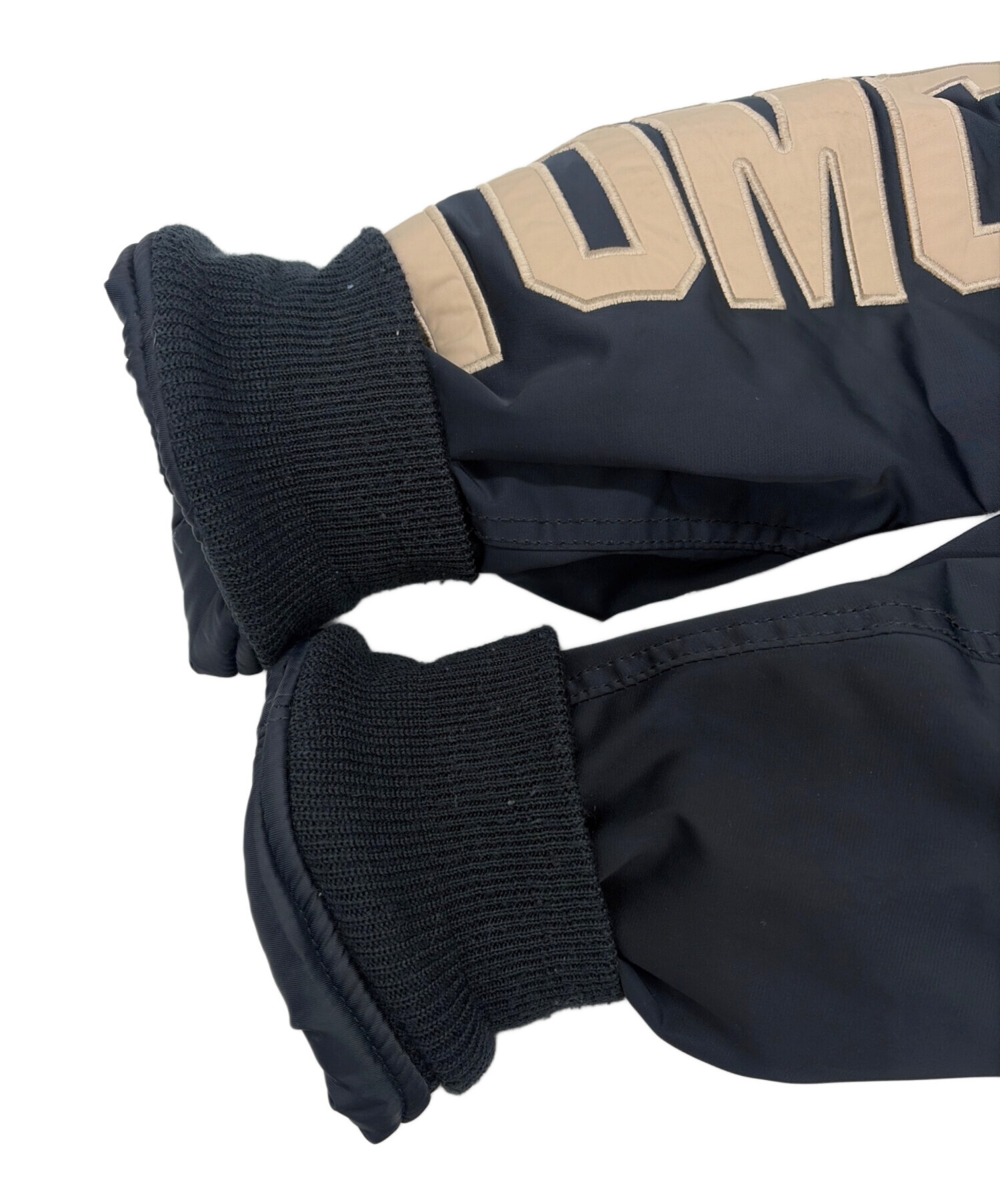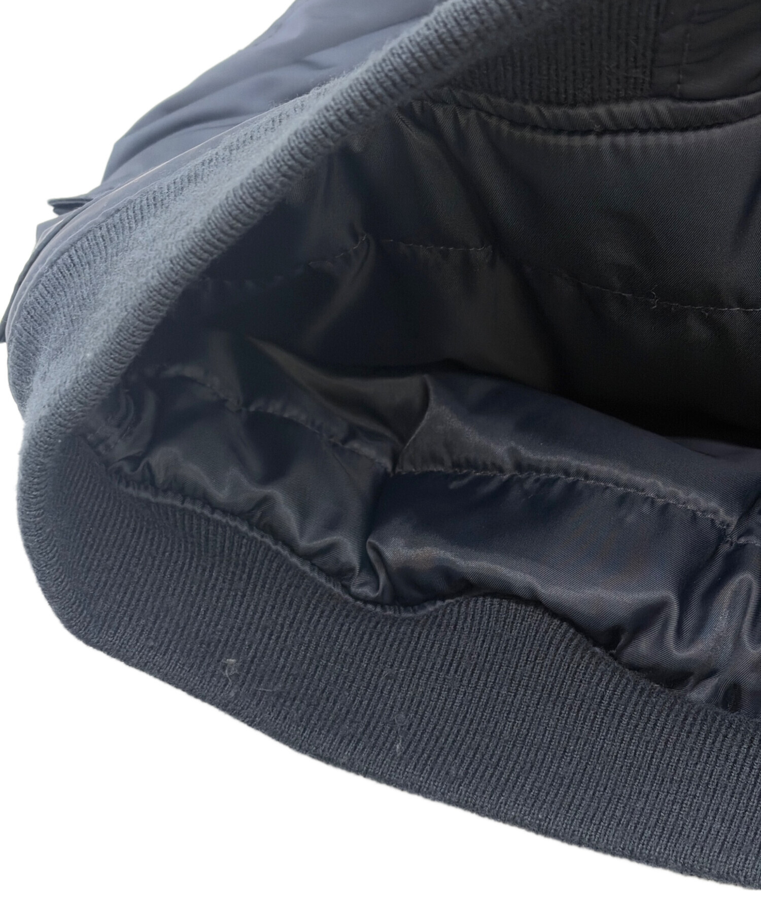 | 素材 | 別布: ポリエステル 100% : ポリエステル 60% リブ部分: アクリル 62% 毛 27% ポリエステル 9% ポリウレタン 2% 刺繍糸: レーヨン 100% : 合成皮革 |