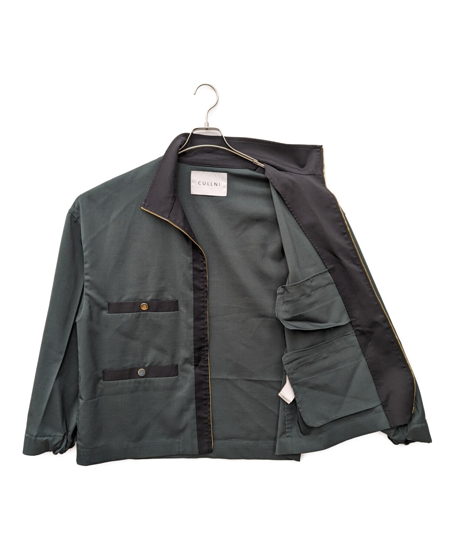 | スタッフコメント | 日本のファッションブランド、クルニのスタンドブルゾンです。ダークグリーンカラーがクールな印象のアイテムです。 |