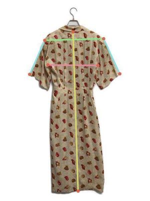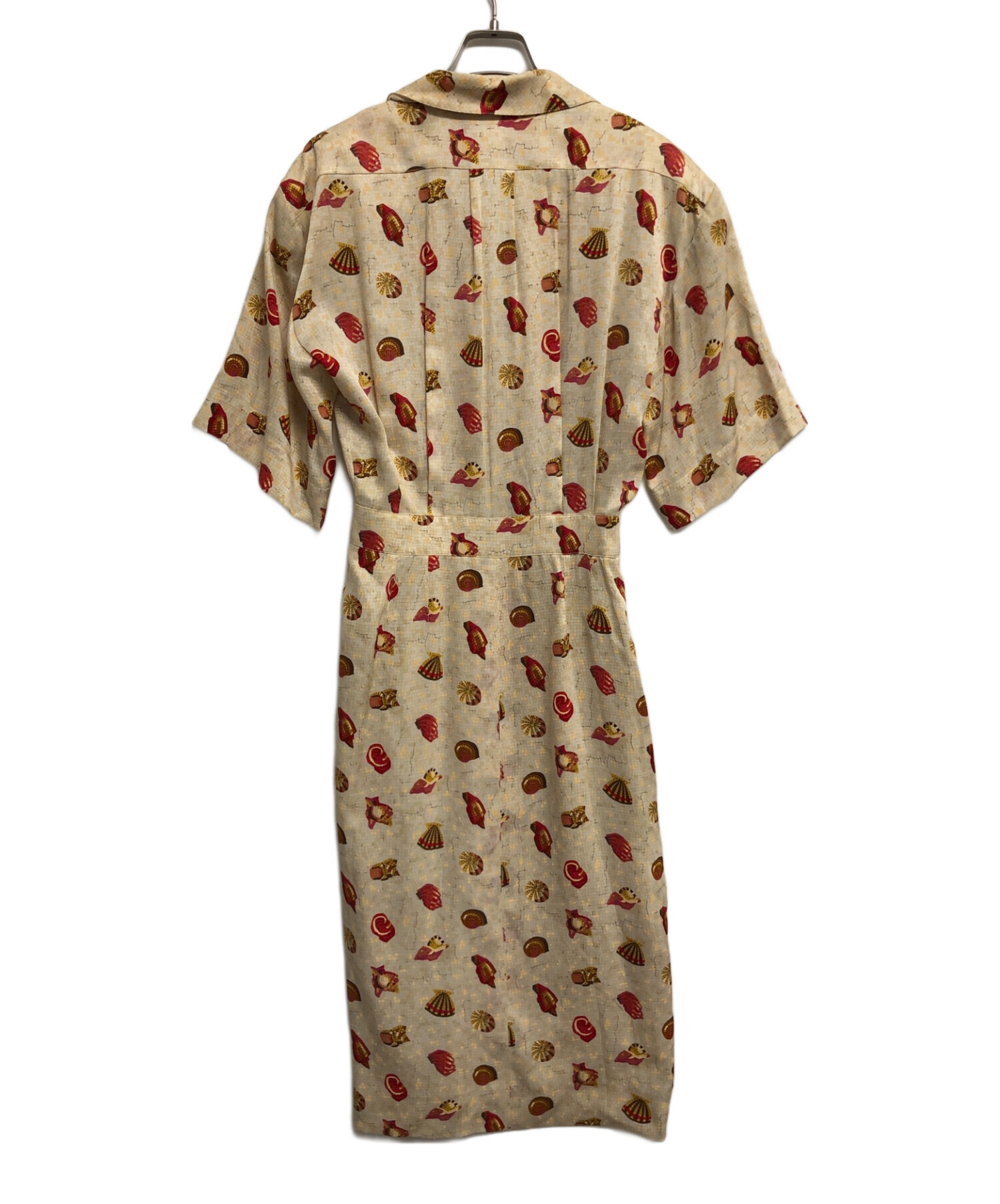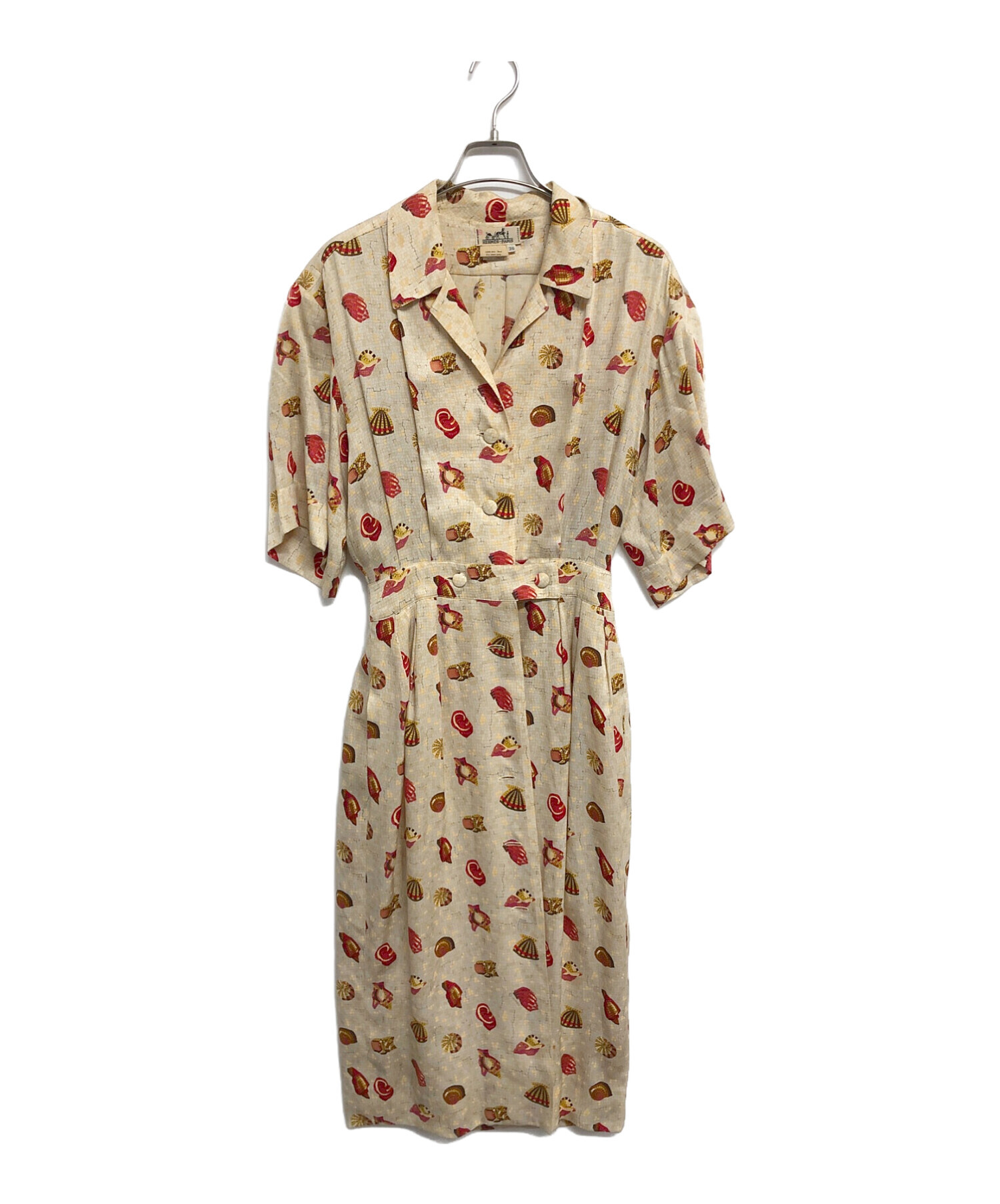 • HERMES(エルメス)HERMES (エルメス) ウエストベルト付きシルクワンピース ベージュ×レッド サイズ:SIZE 36の古着・服飾アイテム