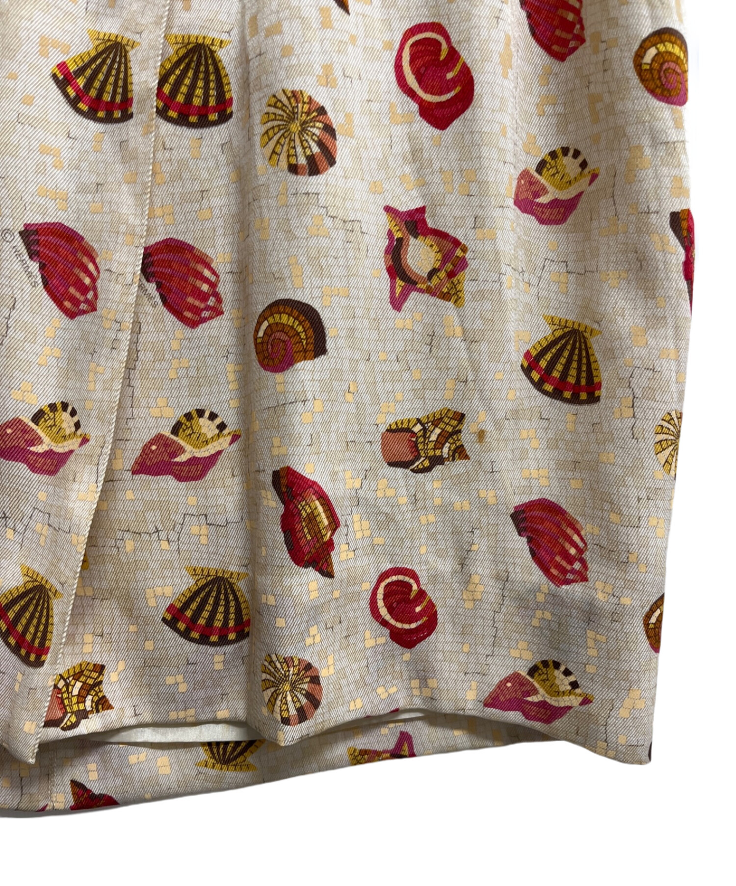 • HERMES(エルメス)HERMES (エルメス) ウエストベルト付きシルクワンピース ベージュ×レッド サイズ:SIZE 36の古着・服飾アイテム ベルト金具部分に一部色褪せあり。