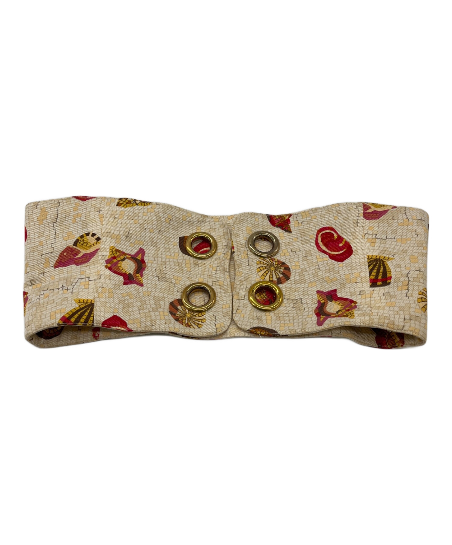 • HERMES(エルメス)HERMES (エルメス) ウエストベルト付きシルクワンピース ベージュ×レッド サイズ:SIZE 36の古着・服飾アイテム 付属品のベルト