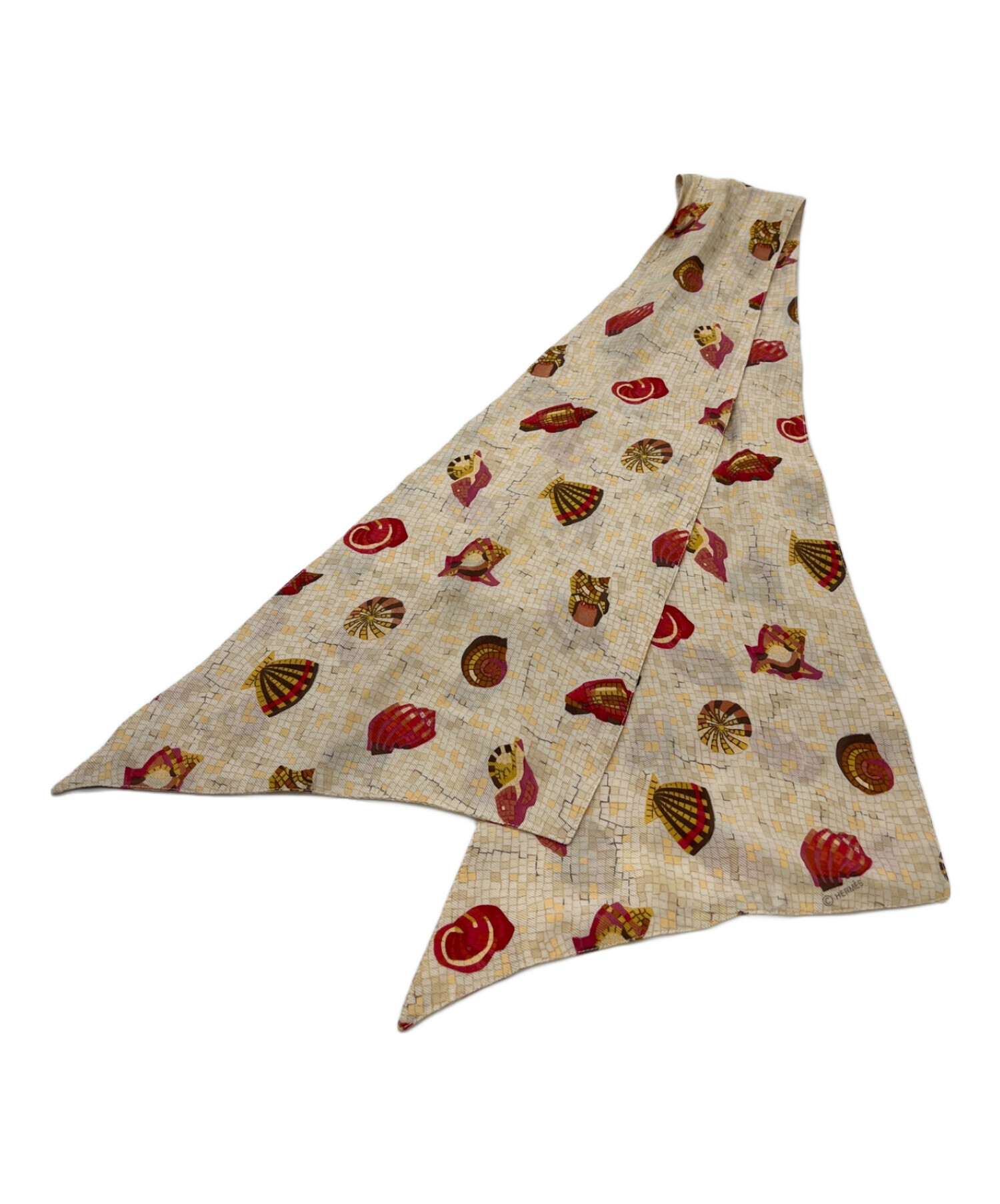 • HERMES(エルメス)HERMES (エルメス) ウエストベルト付きシルクワンピース ベージュ×レッド サイズ:SIZE 36の古着・服飾アイテム 付属品のスカーフ