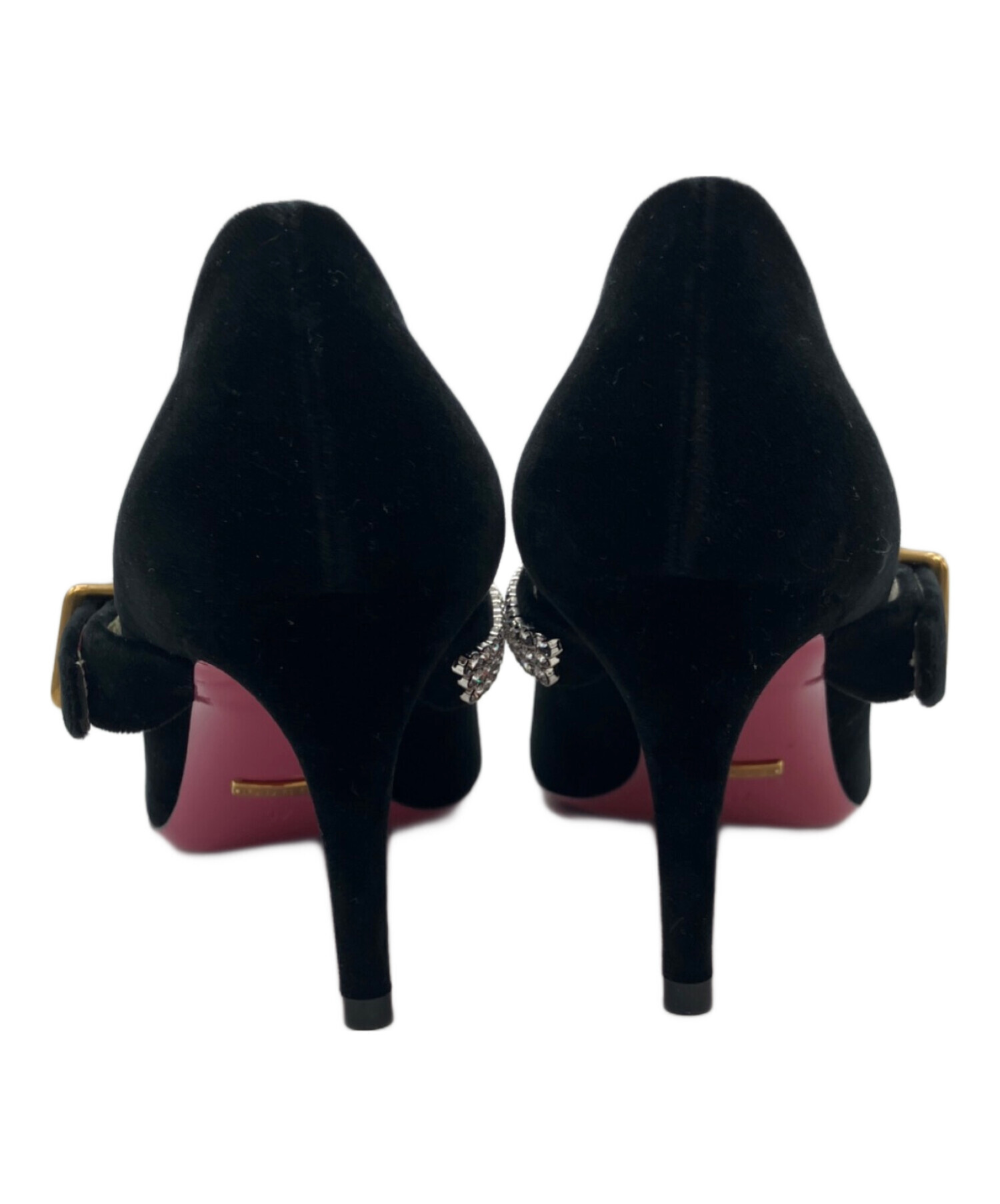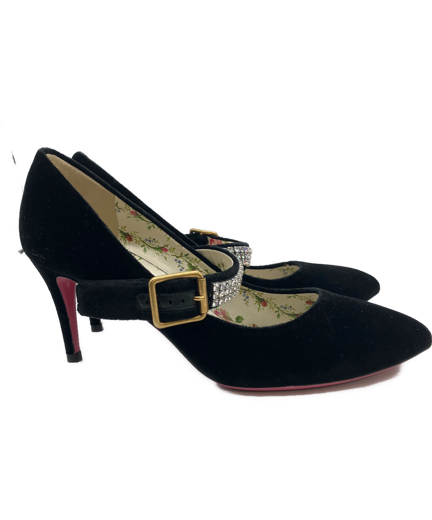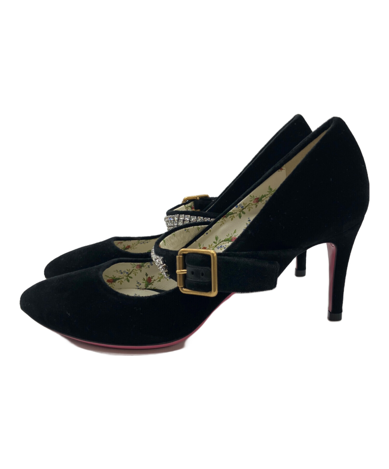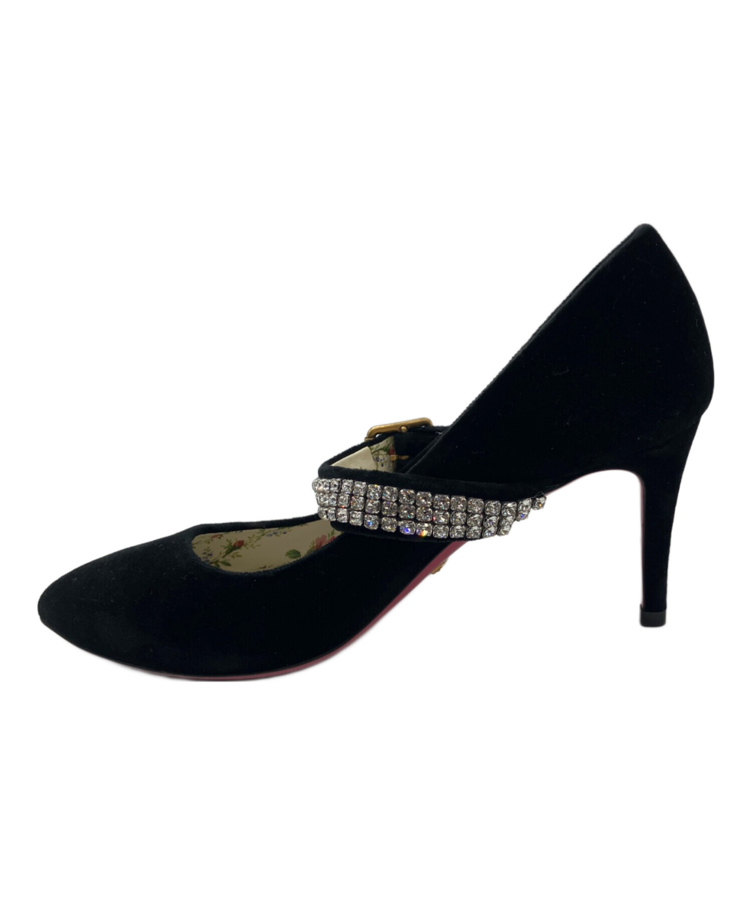 • GUCCI(グッチ)GUCCI (グッチ) ラインストーンストラップパンプス ブラック サイズ:23.5の古着・服飾アイテム ソール部分使用感がございます