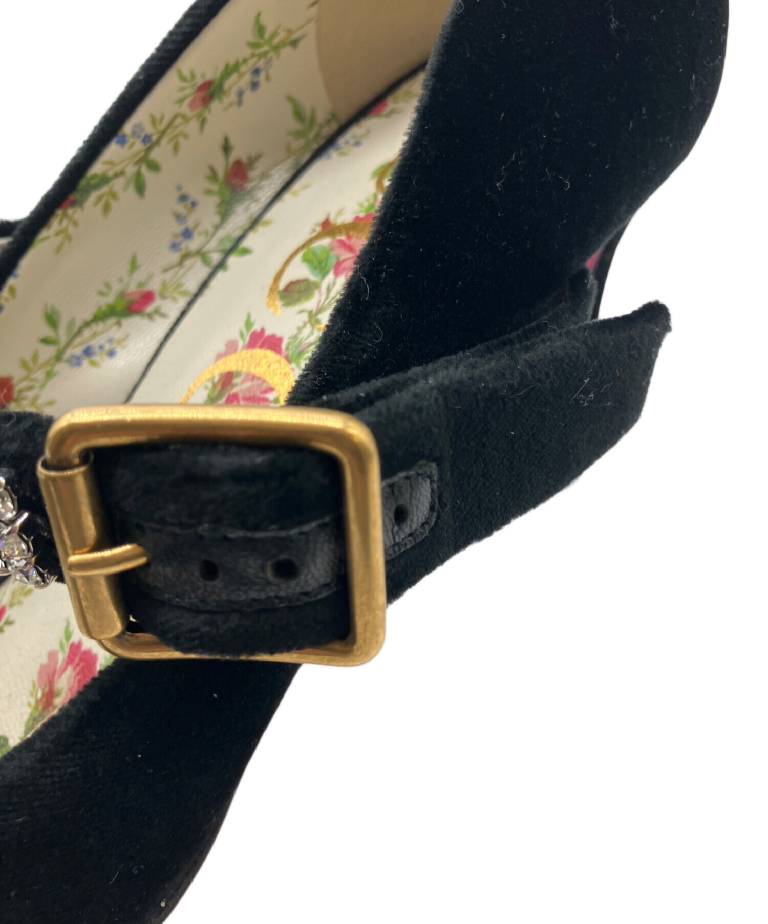 • GUCCI(グッチ)GUCCI (グッチ) ラインストーンストラップパンプス ブラック サイズ:23.5の古着・服飾アイテム ベルト部分使用感がございます