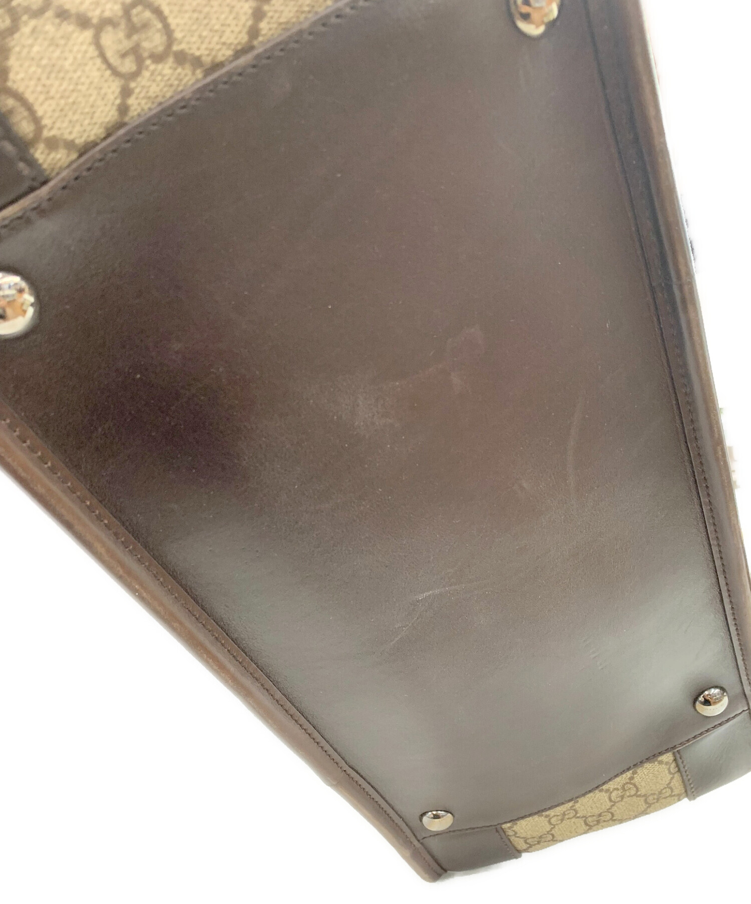 • GUCCI(グッチ)GUCCI (グッチ) GGトートバッグ ベージュ×ブラウンの古着・服飾アイテム 底面キズ