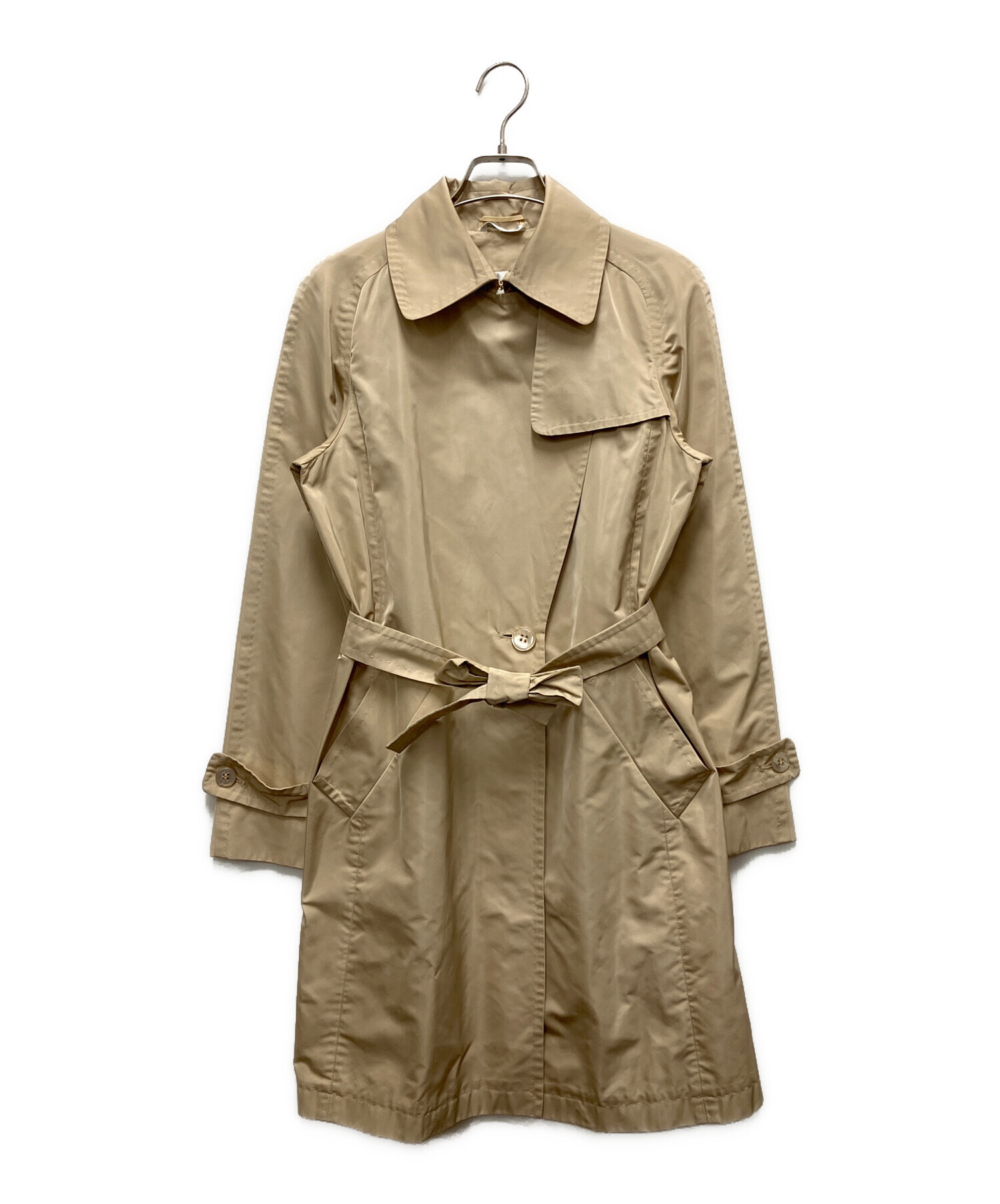 | スタッフコメント | マックスマーラ/シルク混トレンチコートの入荷です。ウエストベルトによってシルエットを変えご着用出来ます。落ちついた雰囲気のシンプルなトレンチ風コートです。ガンフラップやヨーク等トレンチの要素はありながらも繊細なデザインになっております。 |