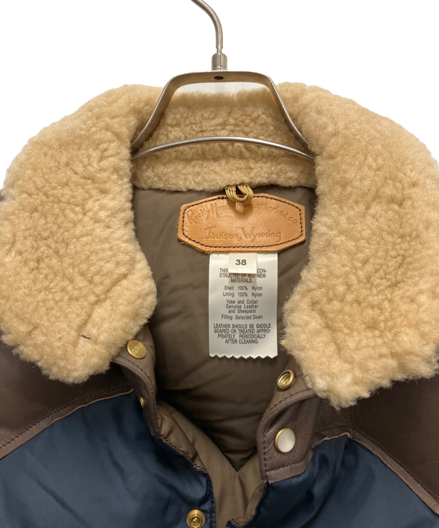 | 素材 | 表地:裏地 ナイロン 100% 詰物: ダウン 90% フェザー 10% ヨーク、ラベル:牛革 毛皮:羊(シープ) |