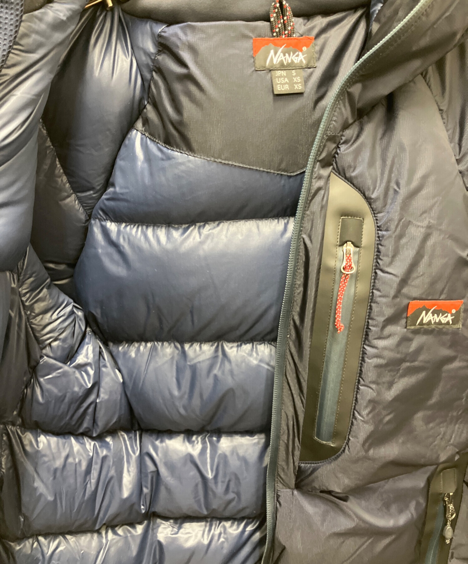 | 素材 | 表地:ナイロン100% 裏地:ナイロン100% 中綿:ダウン93% フェザー7% メッシュ:ポリエステル100% ファスナー縁部:合成皮革 |