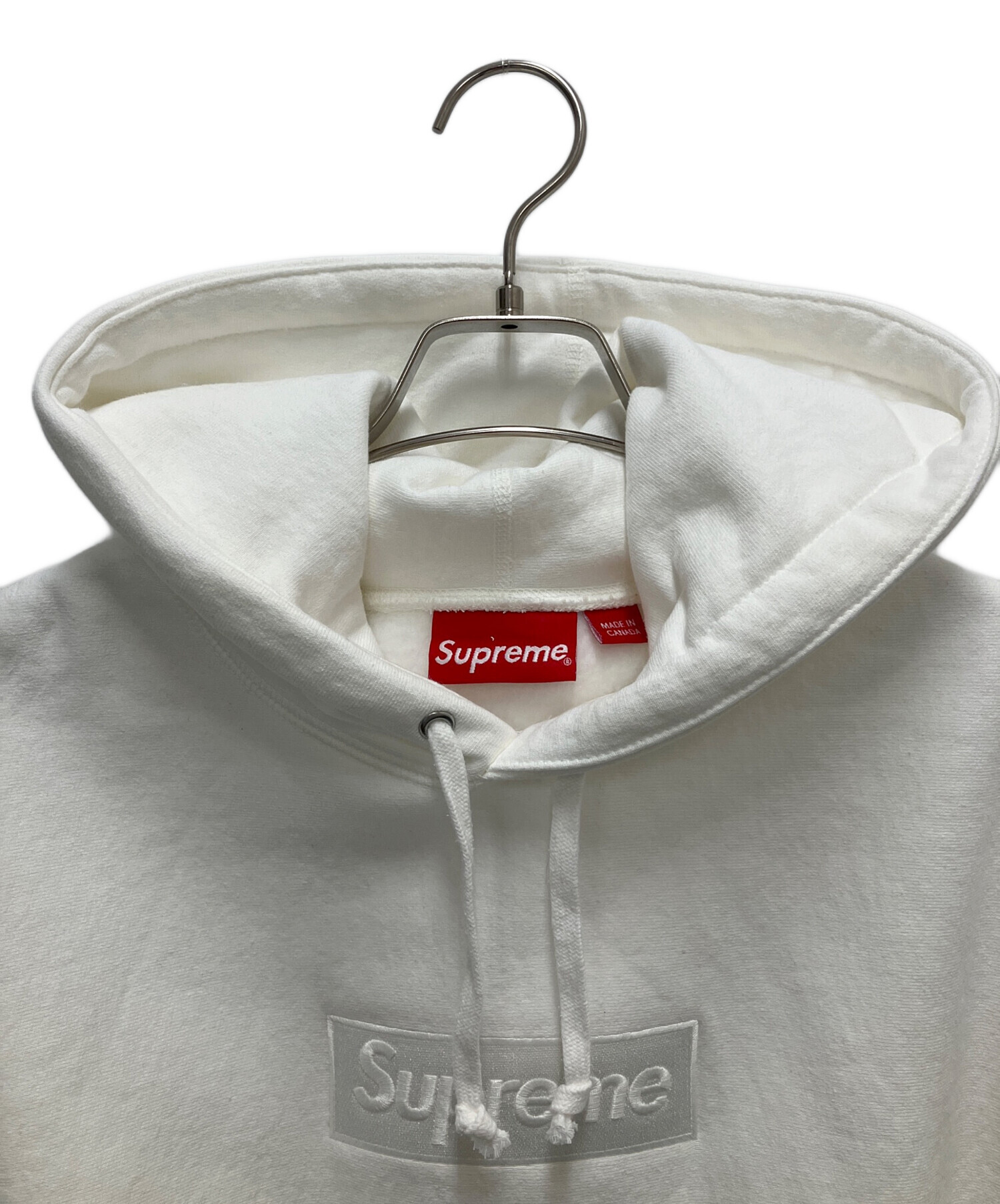 • SUPREME(シュプリーム)SUPREME (シュプリーム) プルオーバーパーカー ホワイト サイズ:SIZE Mの古着・服飾アイテム 裏起毛、着用感有