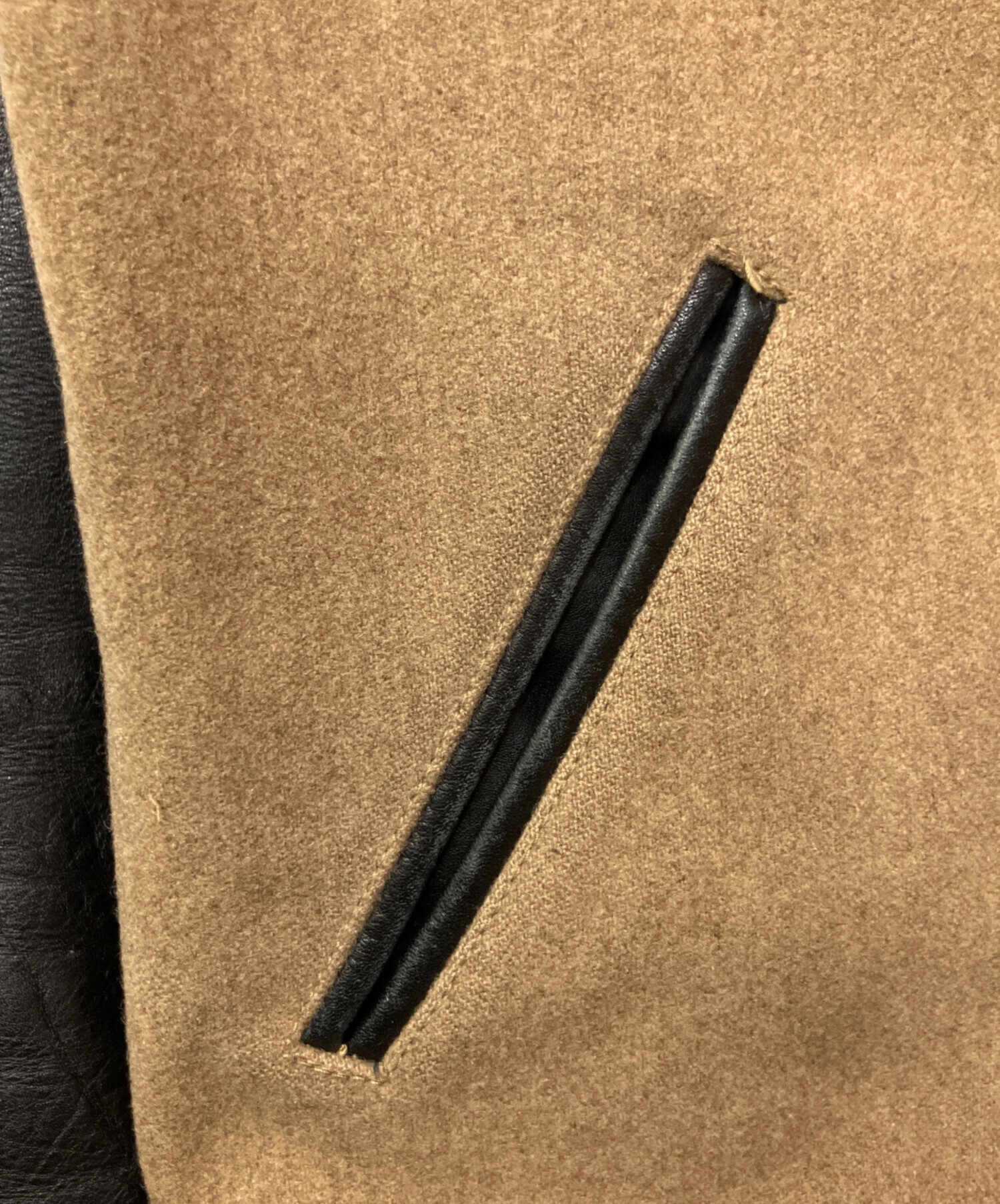 | 素材 | 表地: 毛 90% ナイロン 10% 裏地: キュプラ 100% 革部分: 牛革 リブ: アクリル 70% 毛 30% |