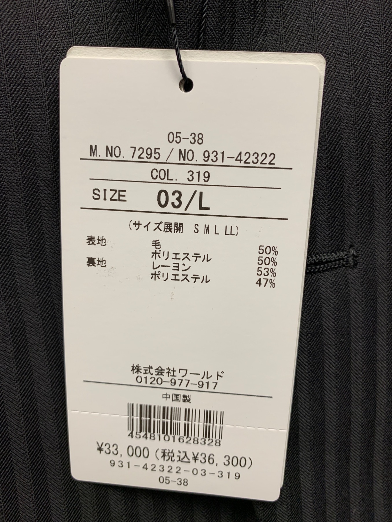 | アイテム名 | スーツジャケット |