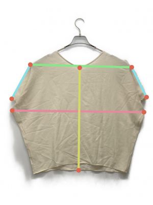 当サイトでは商品の表記サイズの他に、出品商品を採寸しサイズを記載しております。また、実際のアイテム画像を使用した計測とイラストを使用した計測の2パターンがございます。