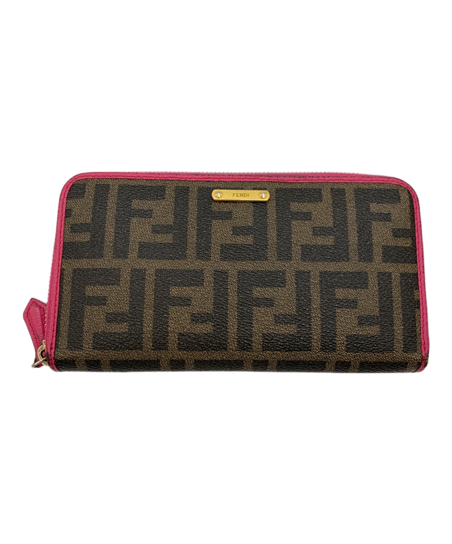 • FENDI(フェンディ)FENDI (フェンディ) ラウンドファスナー財布 ブラウン×ピンクの古着・服飾アイテム 金具スレ、角スレ有