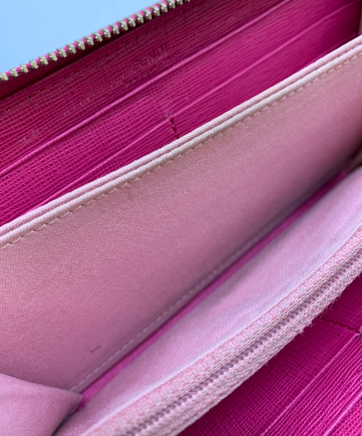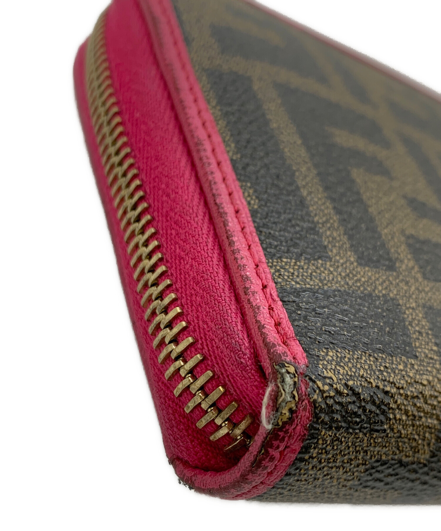 • FENDI(フェンディ)FENDI (フェンディ) ラウンドファスナー財布 ブラウン×ピンクの古着・服飾アイテム ヤブレ、角スレ有