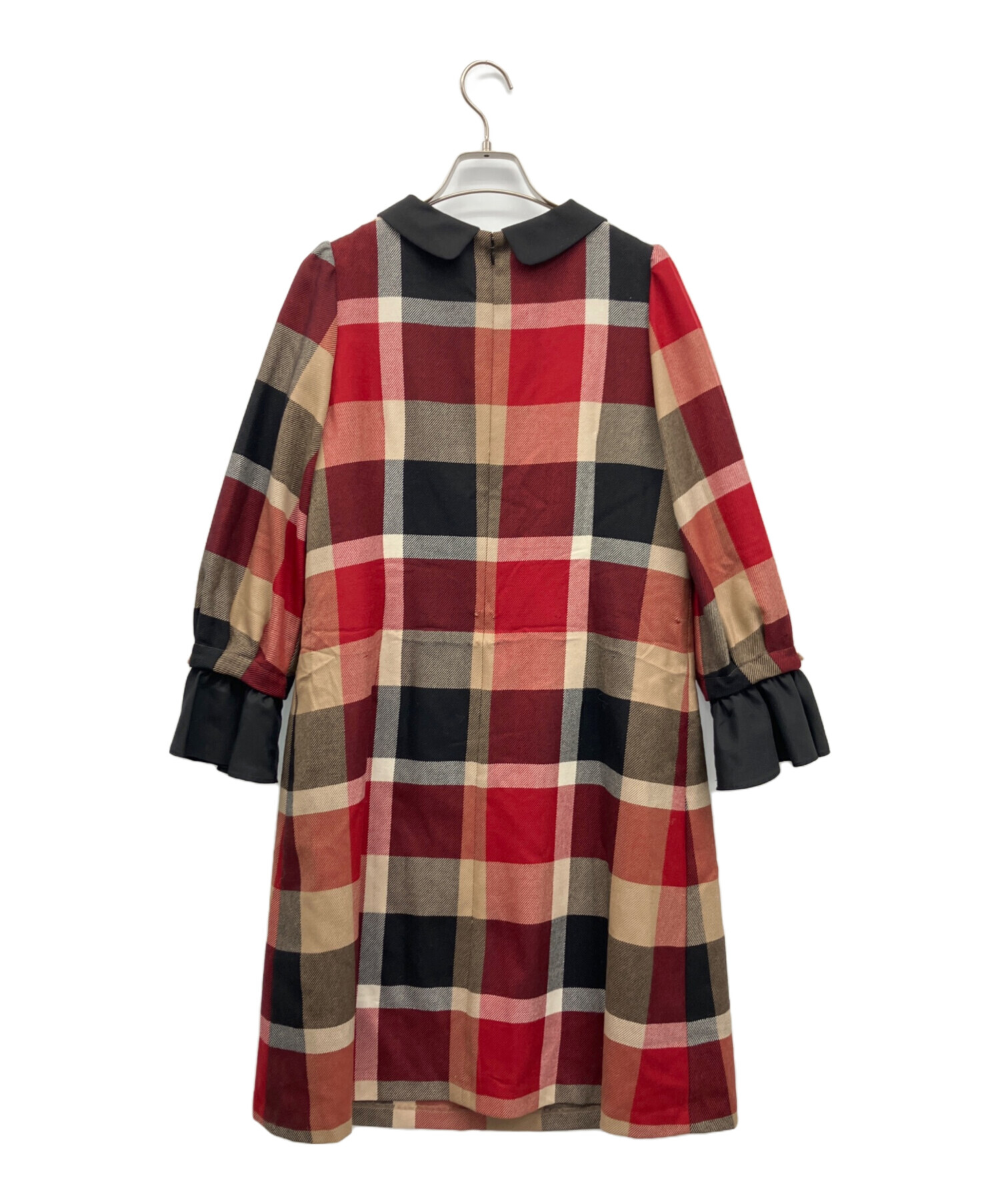 • BLUE LABEL CRESTBRIDGE(ブルーレーベルクレストブリッジ)BLUE LABEL CRESTBRIDGE (ブルーレーベルクレストブリッジ) 長袖ワンピース レッド×ブラック サイズ:38の古着・服飾アイテム 汚れ有