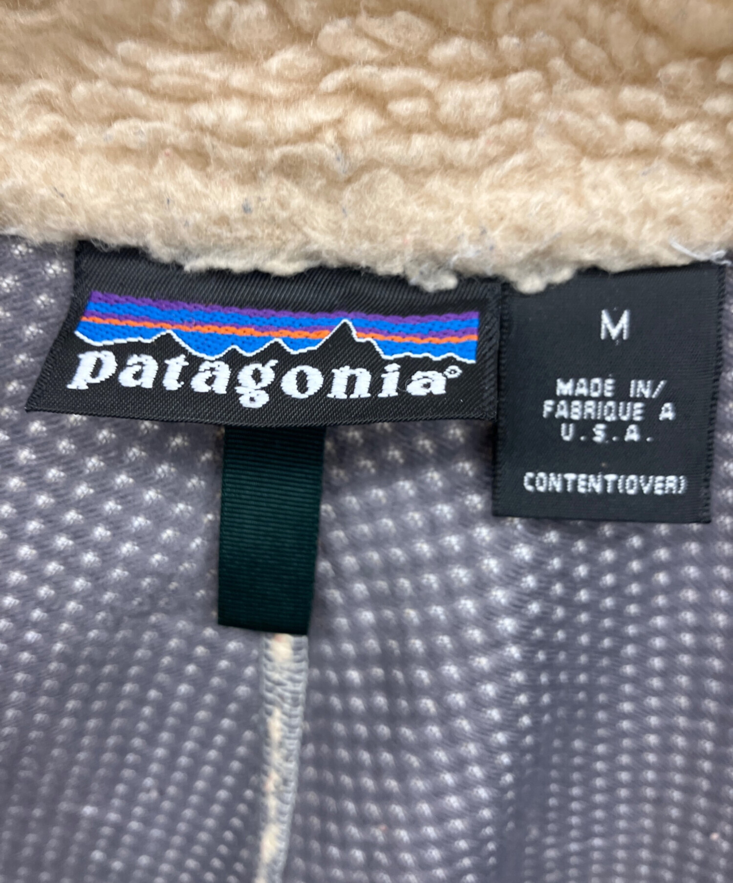 • Patagonia(パタゴニア)Patagonia (パタゴニア) クラシックレトロXジャケット ベージュ×グリーン サイズ:Mの古着・服飾アイテム 汚れ有