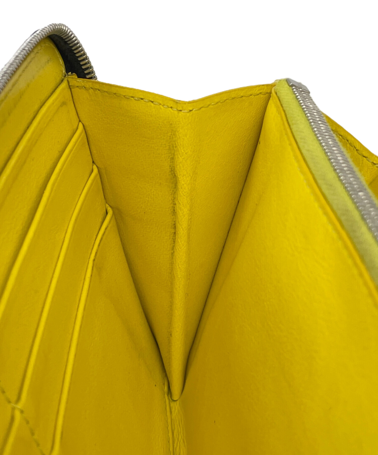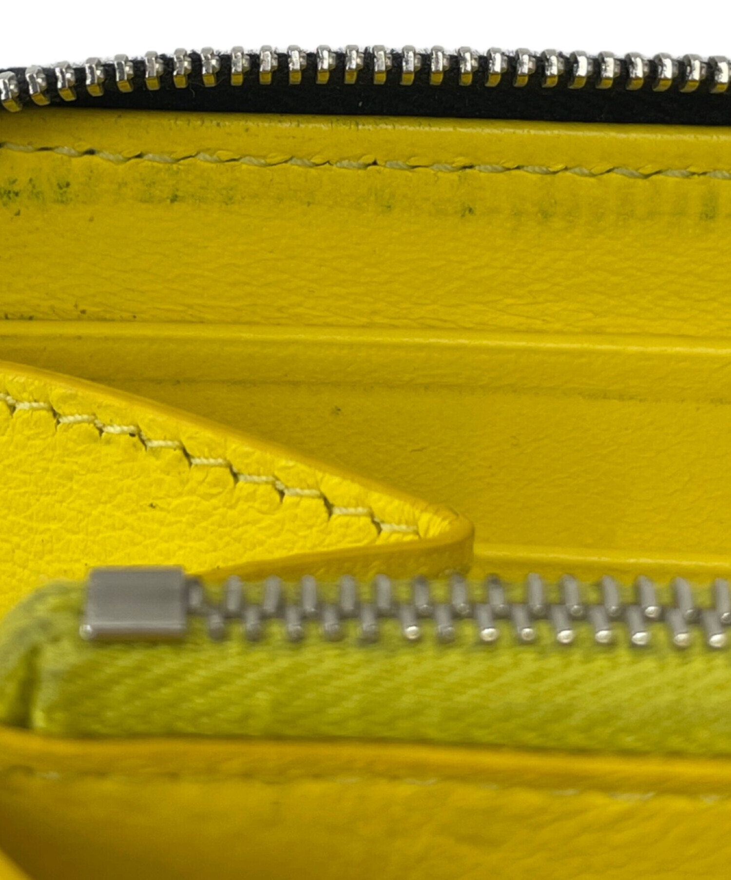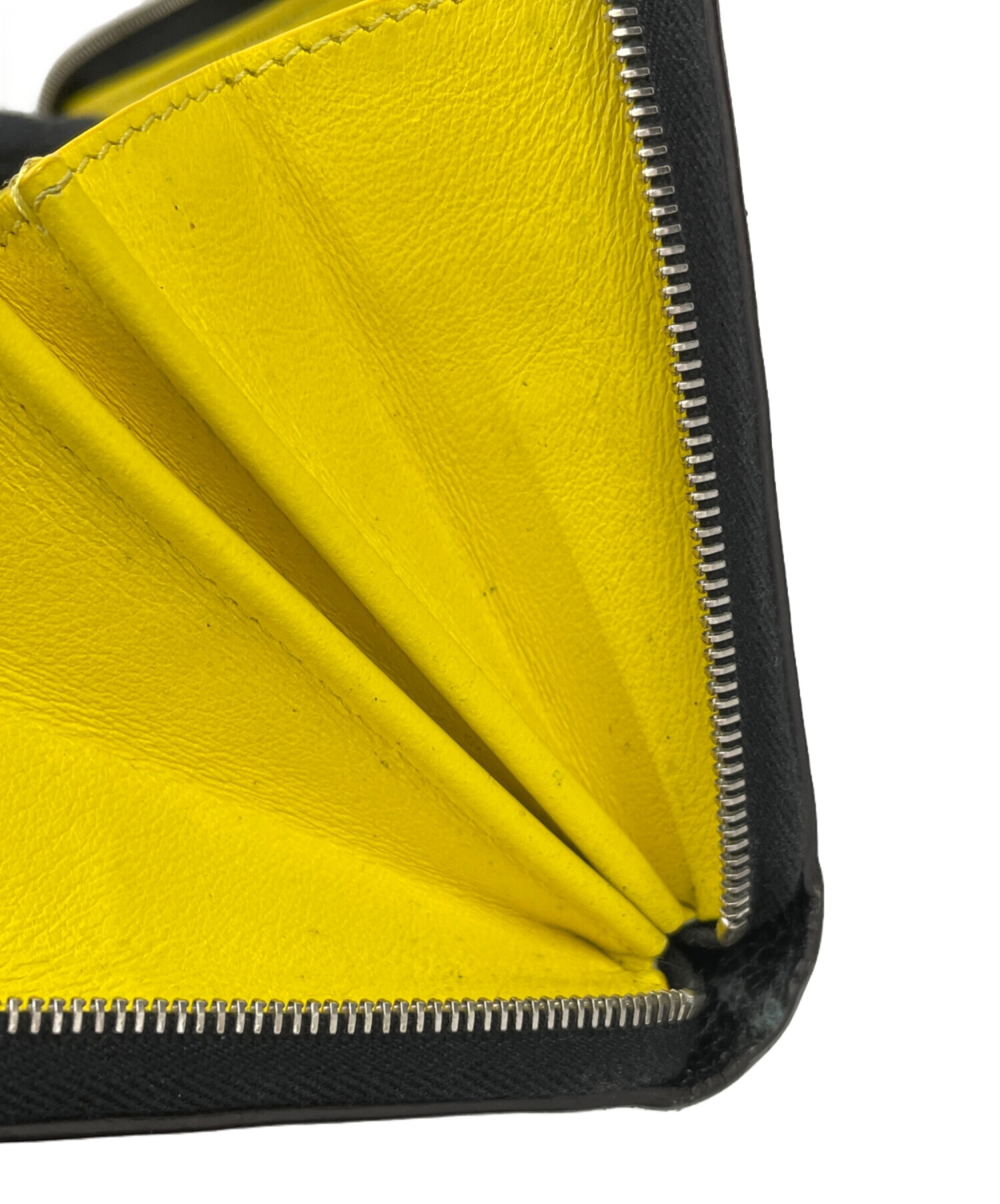 | スタッフコメント | 外側のオールブラックで落ち着いた印象とは、一遍変わり内部はイエローのワンカラ―とインパクトのあるデザインが特徴的なお品物です。ラウンドジップで口が大きく開き、使い勝手も良いアイテムです。 |