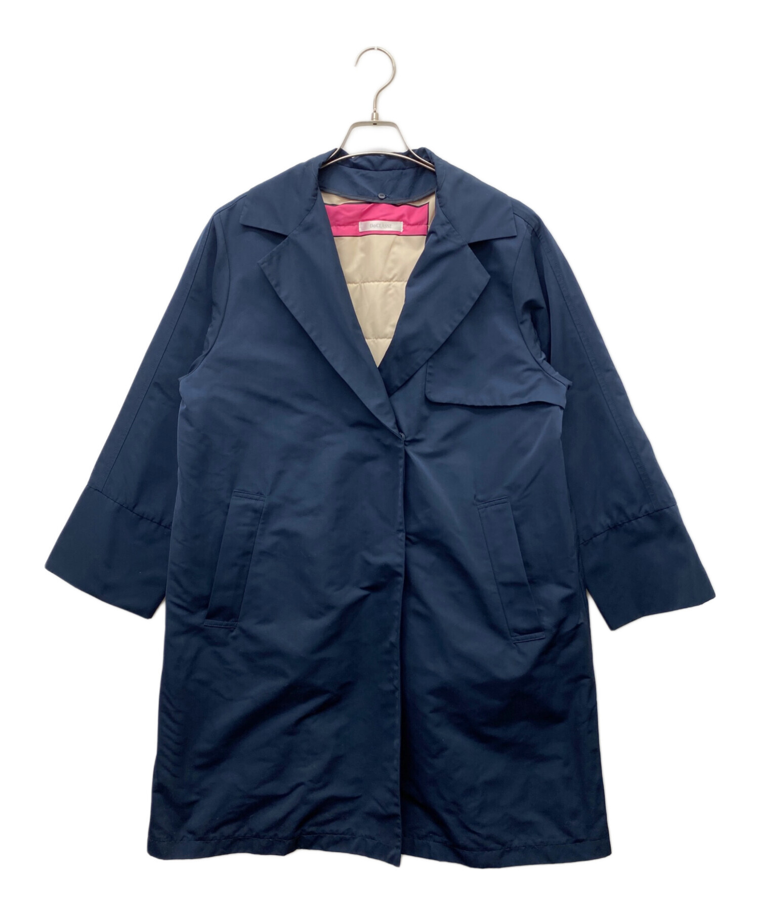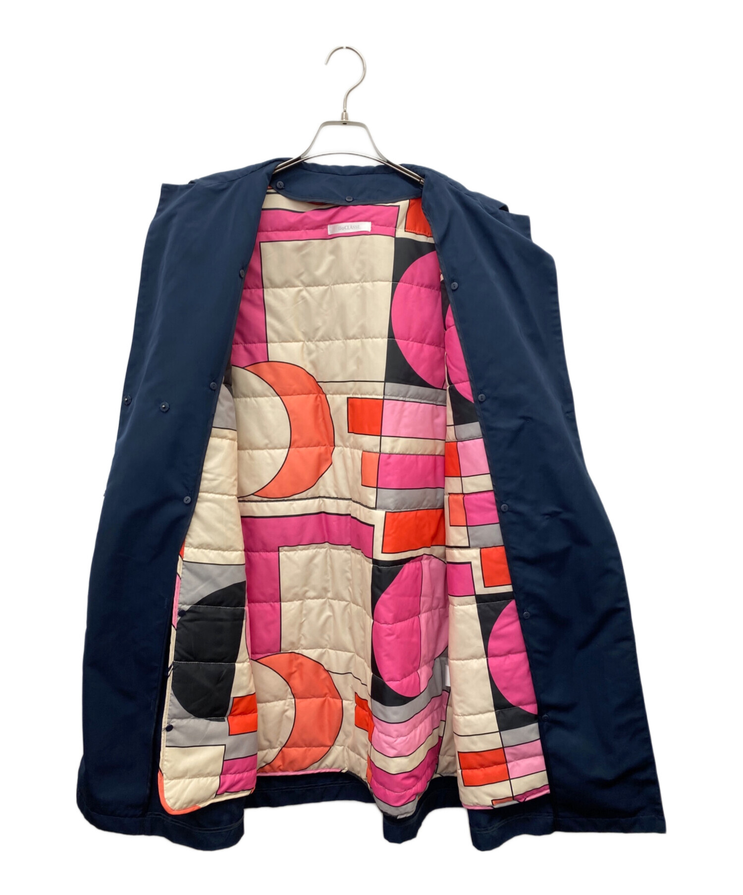 | スタッフコメント | 取り外し可能な中綿のライナーが付いたコートです。シーズンに合わせて2WAYでご着用いただけます。落ち着いたネイビーのシンプルなデザインに、明るい印象のライナーが特徴的なアイテムです。 |