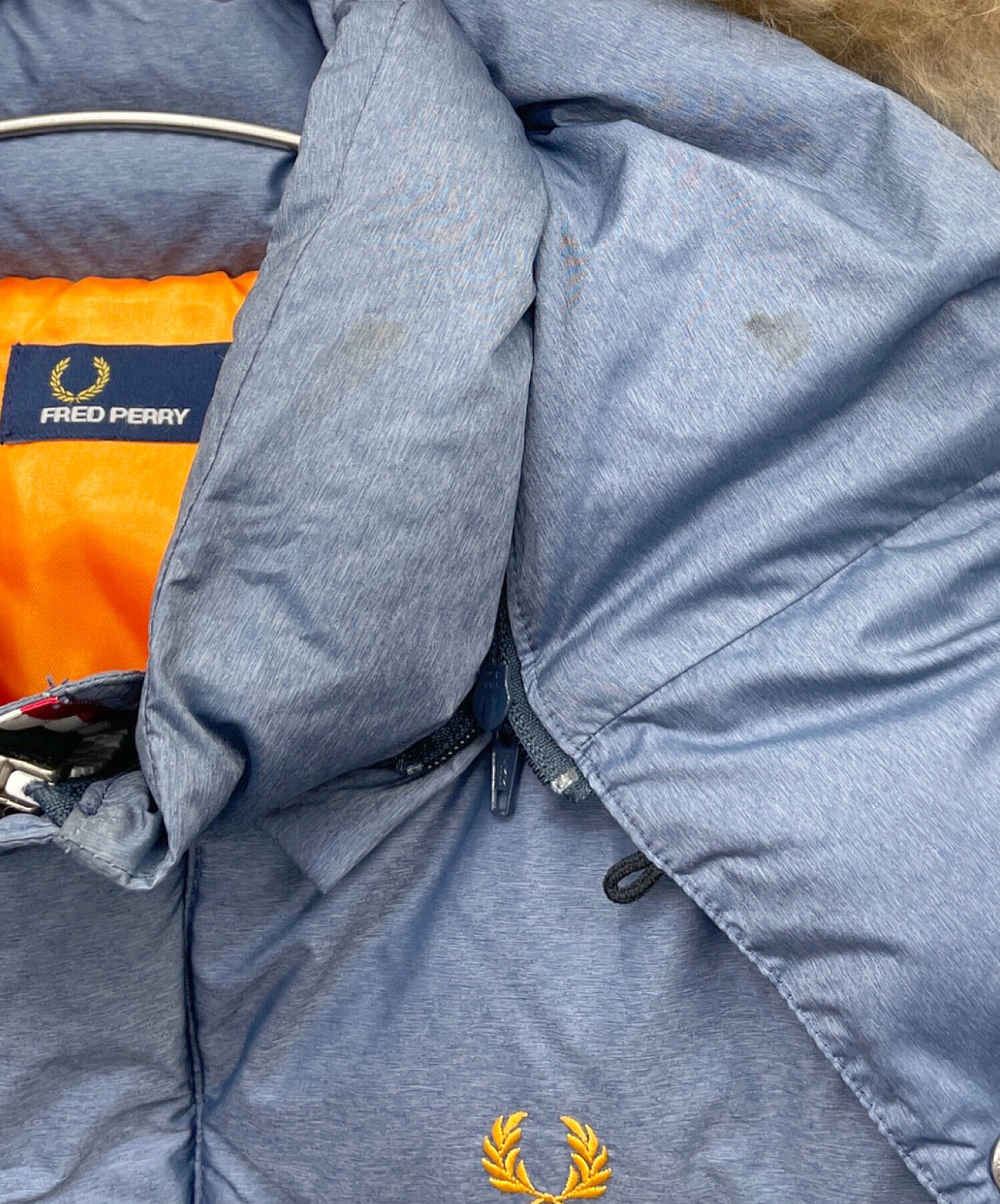 • FRED PERRY(フレッドペリー)FRED PERRY (フレッドペリー) ダウンジャケット ブルー サイズ:Mの古着・服飾アイテム ヨゴレ有