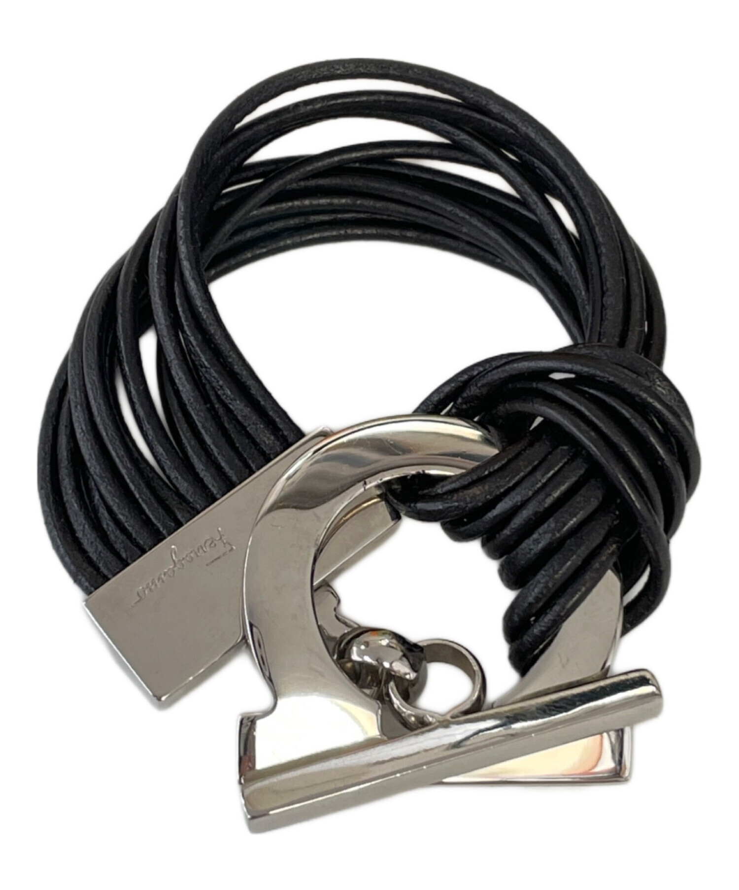 • Salvatore Ferragamo(サルヴァトーレ フェラガモ)Salvatore Ferragamo (サルヴァトーレ フェラガモ) ブレスレット ガンチーニ ブラック×シルバーの古着・服飾アイテム キズ有