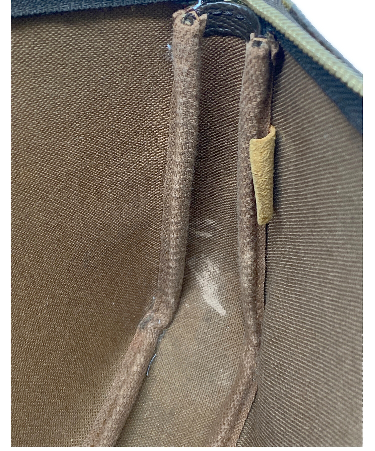 | 状態 | ファスナー部分に剥がれ、バッグ内側に目立つヨゴレが複数ヶ所見受けられる商品になります。ご購入に商品写真のご確認をお願い致します。 こちらの商品は中古品の為、使用に伴いますキズ、汚れが各所に見受けられます。店頭にて展示販売を行っている為、記載に無い細かなキズ、汚れが見受けられる場合がございます。 |