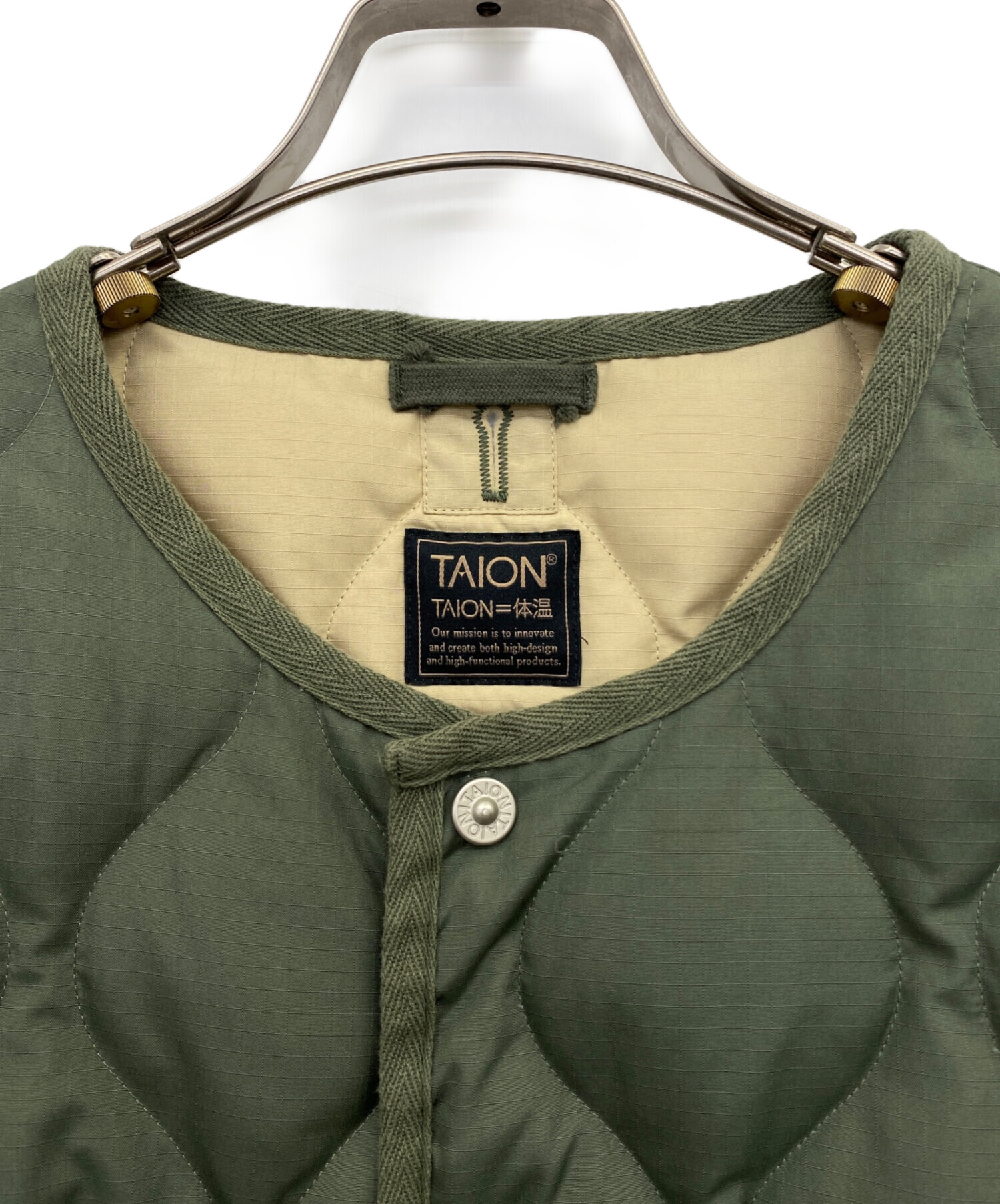 • TAION(タイオン)TAION (タイオン) ミリタリー クルーネック ダウンジャケット グリーン サイズ:XLの古着・服飾アイテム ホツレ有