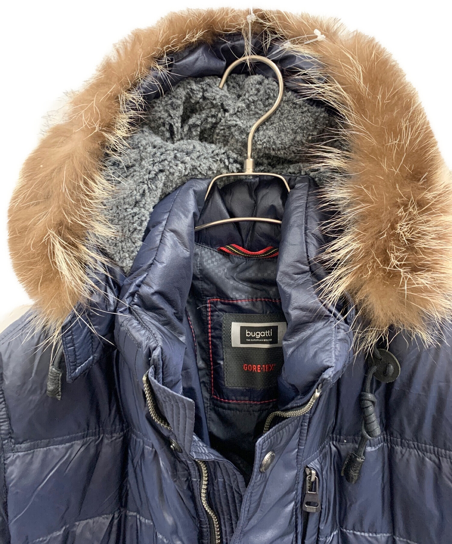 | スタッフコメント | 高級感のあるネイビーカラーで保温効果のあるBugattiのダウンジャケットです。帽子の取り外し可能で雰囲気の違う印象になります。 |