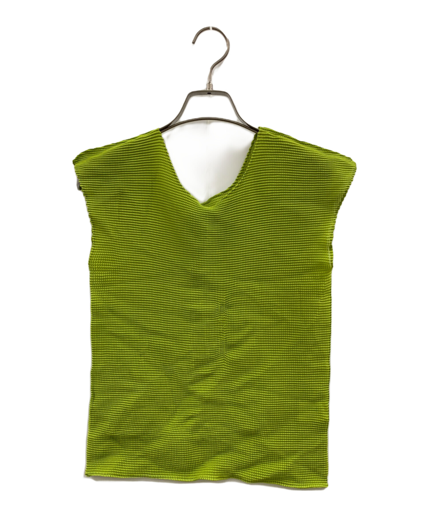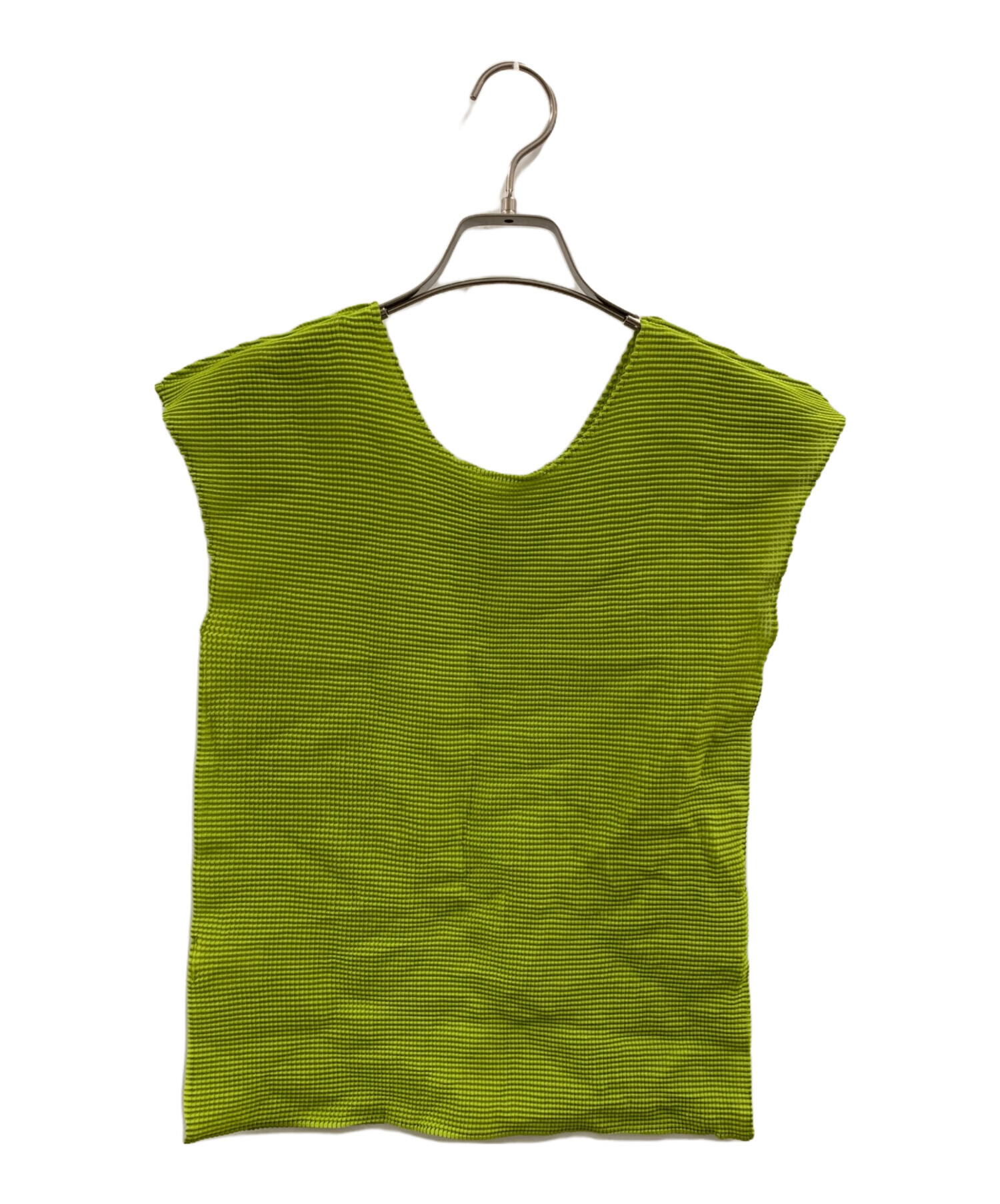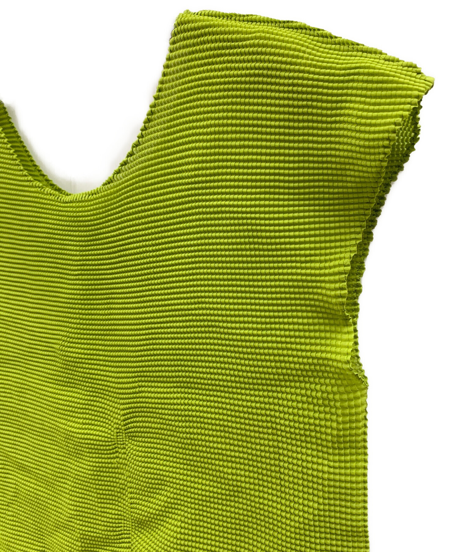 | スタッフコメント | 鮮やかなグリーンカラーが映えるISSEY MIYAKE MEのノースリーブカットソーです。 |