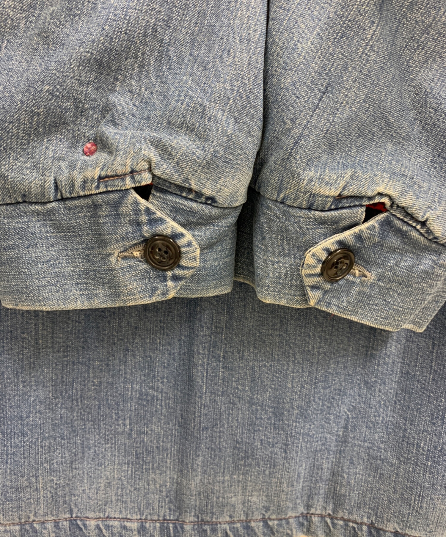 目立つシミや汚れ、におい等がある場合は商品画像や説明文にて極力表記させていただいておりますが、中古品という商品の特性上、全ての瑕疵や不備、洋服直し箇所を撮影・記載をすることは難しくなっております。また、ほとんどのアイテムは店頭と併売しておりますため、出品掲載時からコンディションが変動している場合もございます。あらかじめご了承くださいませ。