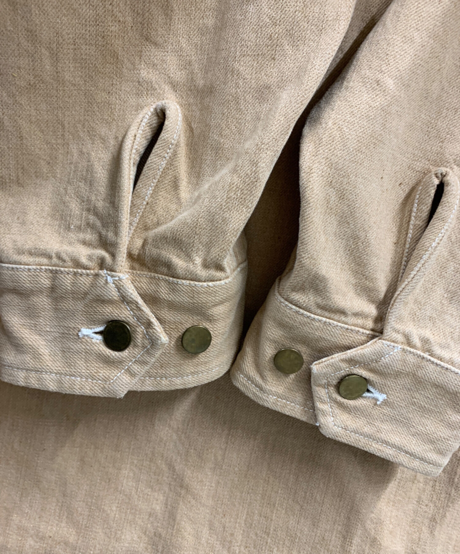目立つシミや汚れ、におい等がある場合は商品画像や説明文にて極力表記させていただいておりますが、中古品という商品の特性上、全ての瑕疵や不備、洋服直し箇所を撮影・記載をすることは難しくなっております。また、ほとんどのアイテムは店頭と併売しておりますため、出品掲載時からコンディションが変動している場合もございます。あらかじめご了承くださいませ。