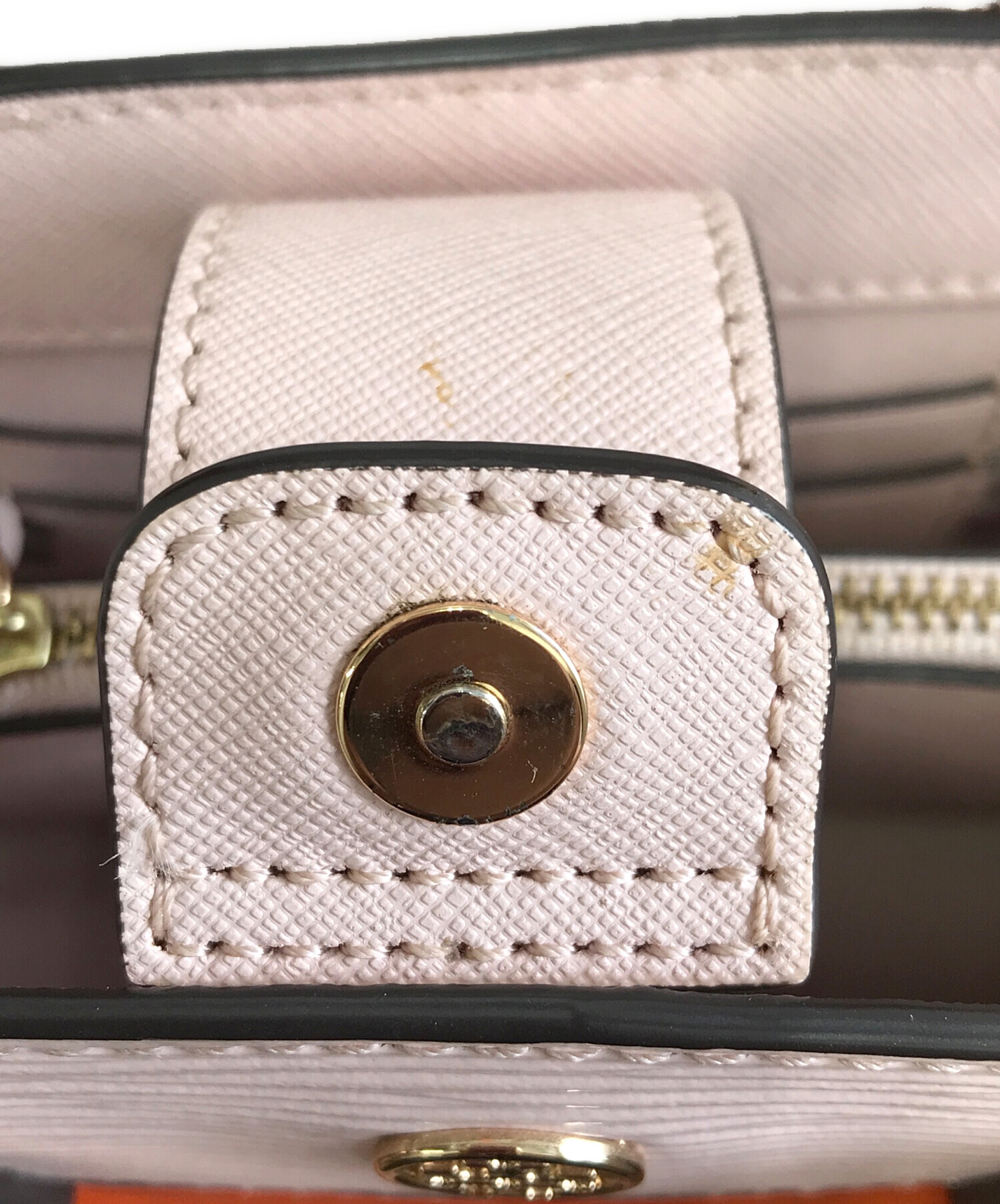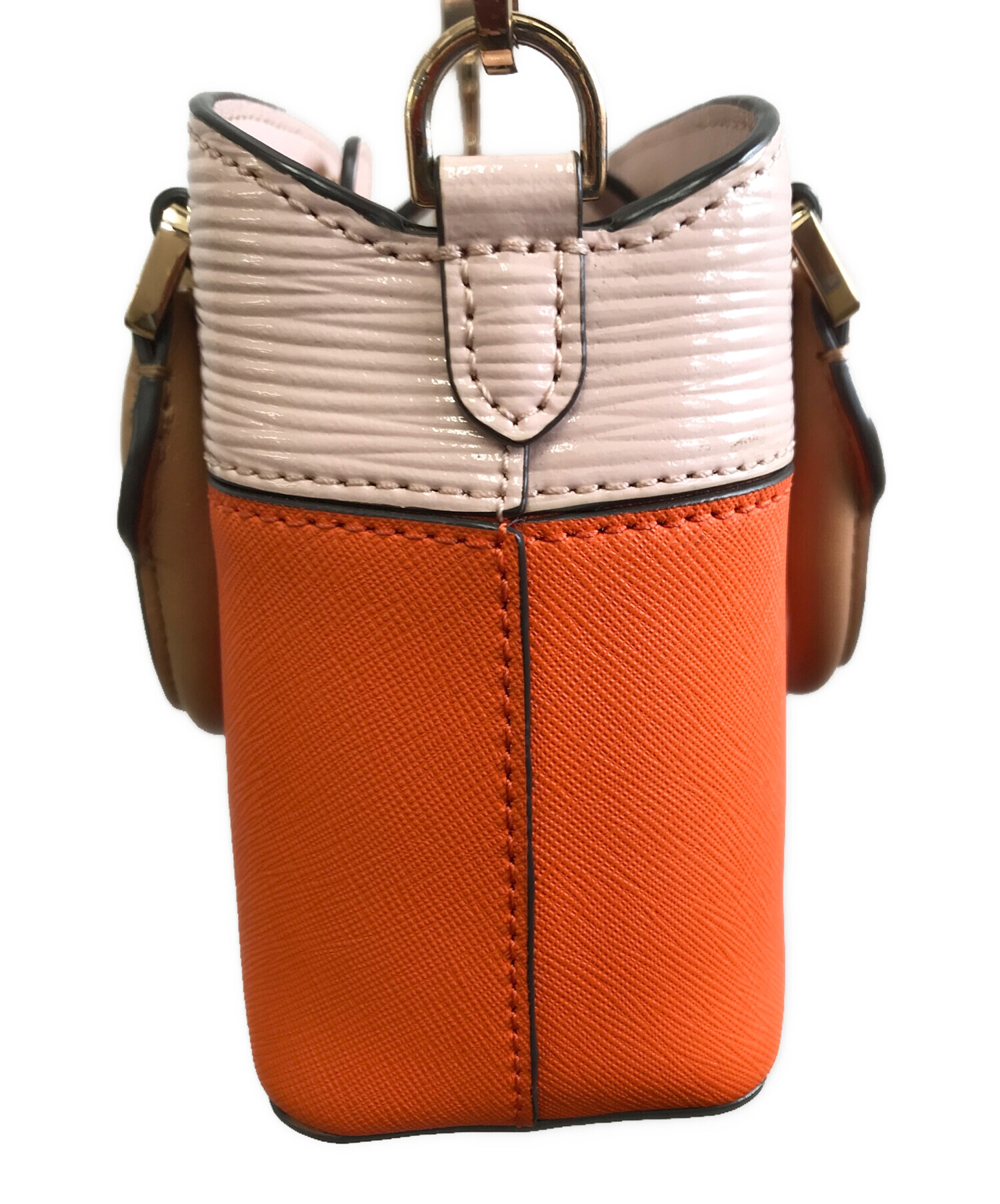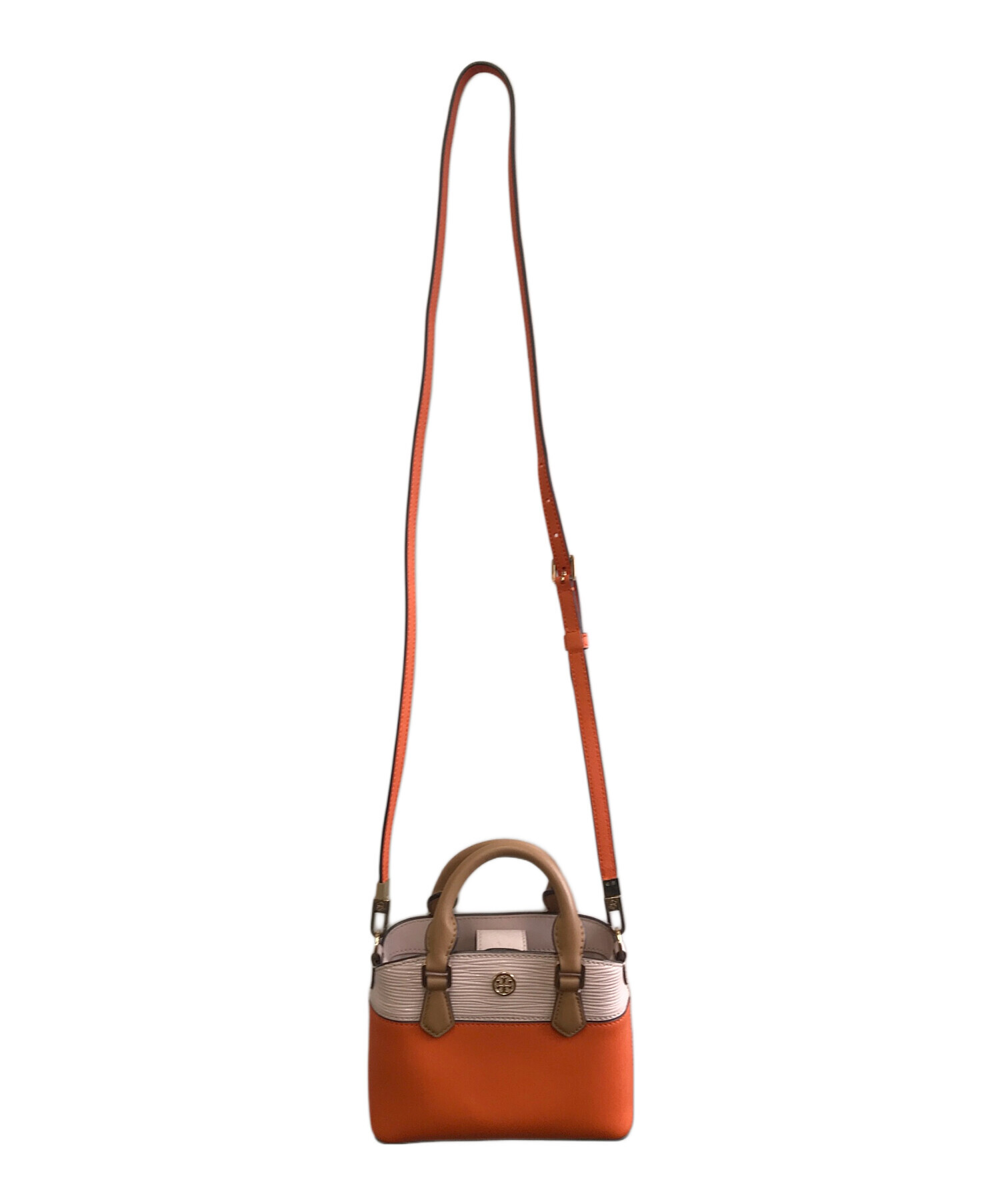 • TORY BURCH(トリーバーチ)TORY BURCH (トリーバーチ) 2WAYバッグ オレンジ×ピンクの古着・服飾アイテム ショルダー奥の穴付近と上部に小さい汚れ有