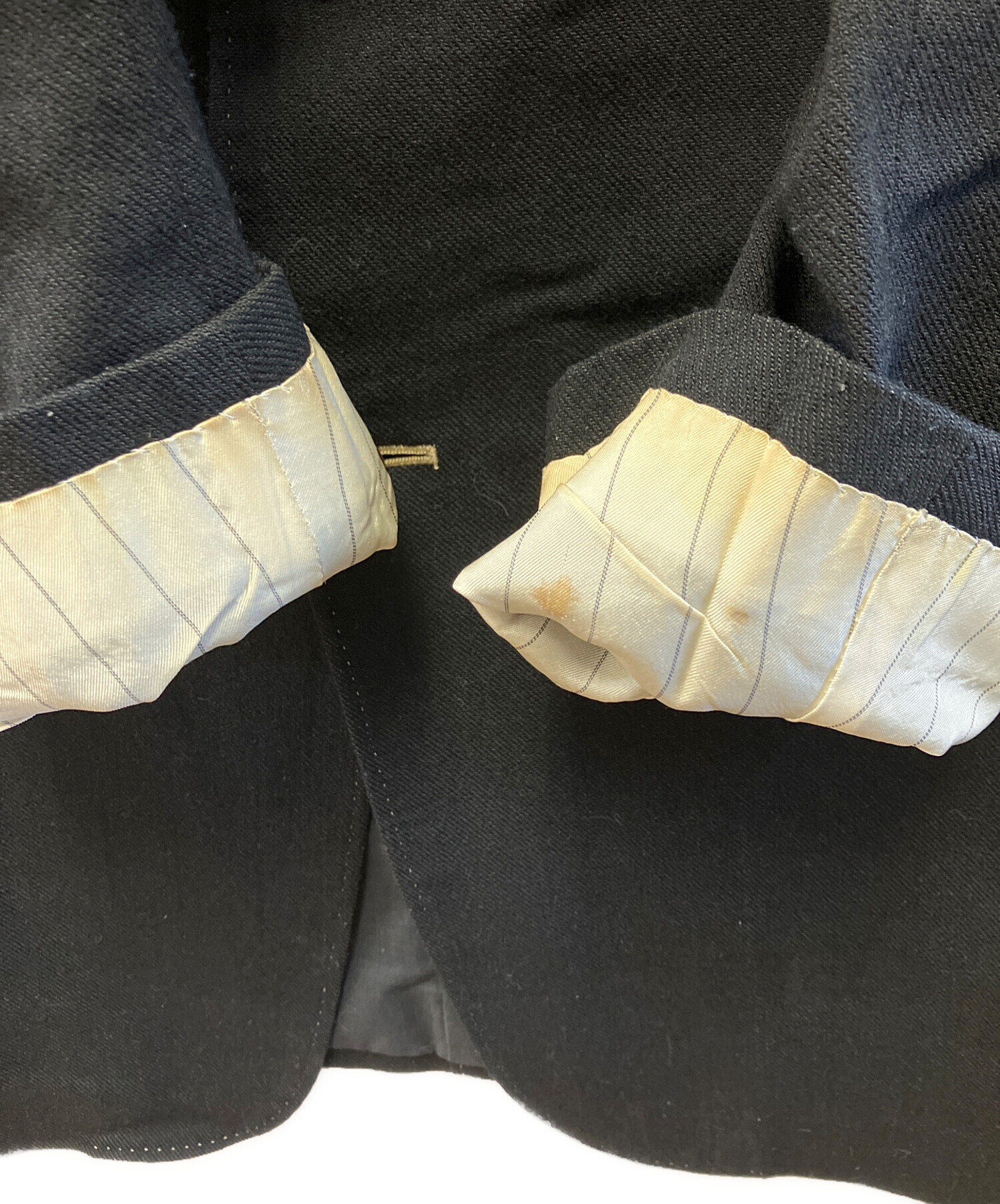 目立つシミや汚れ、におい等がある場合は商品画像や説明文にて極力表記させていただいておりますが、中古品という商品の特性上、全ての瑕疵や不備、洋服直し箇所を撮影・記載をすることは難しくなっております。また、ほとんどのアイテムは店頭と併売しておりますため、出品掲載時からコンディションが変動している場合もございます。あらかじめご了承くださいませ。