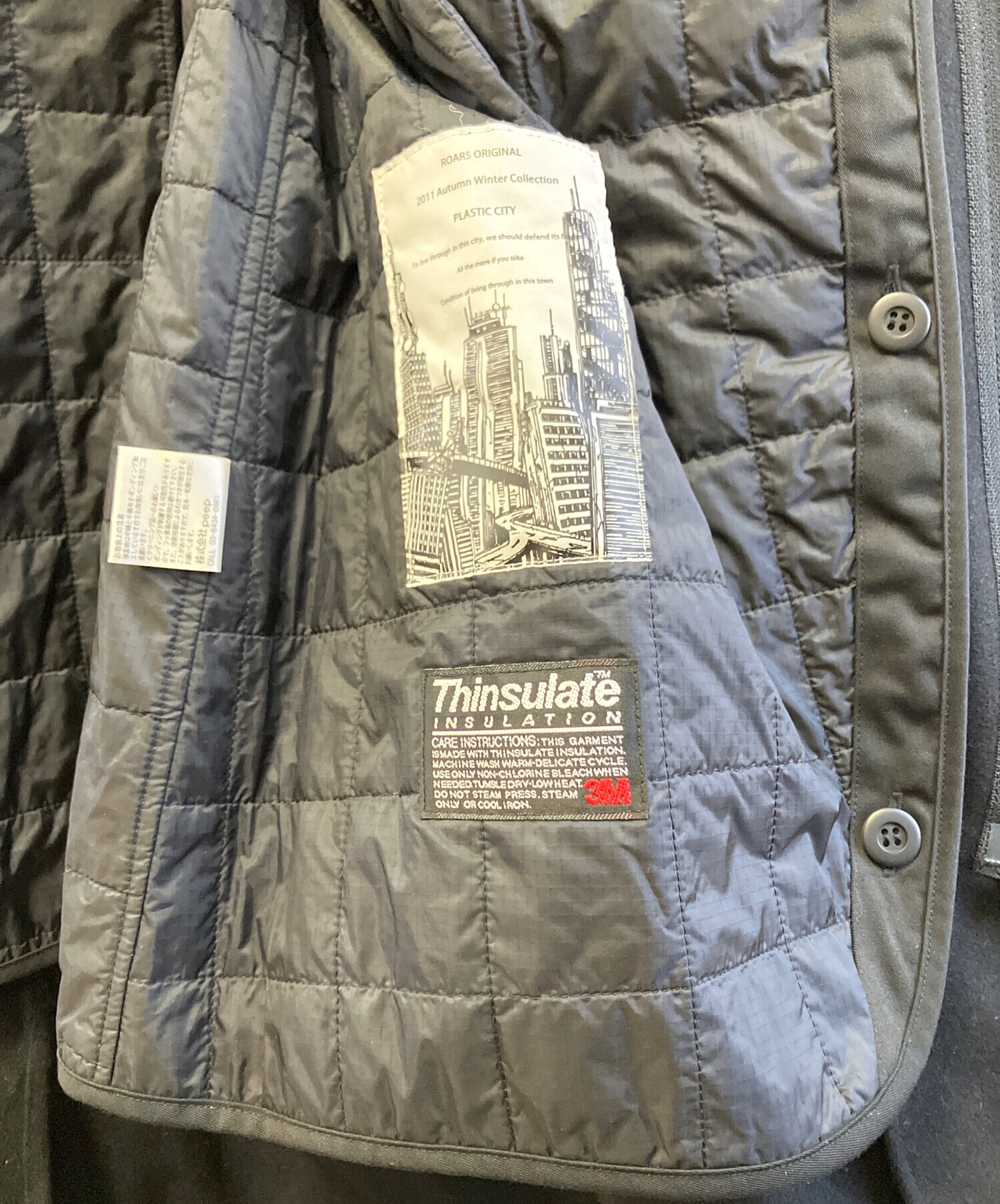 | 素材 | 表地:ウール90%、ナイロン10% 裏地:ナイロン100% 中綿:ポリプロピレン65%、ポリエステル35% |