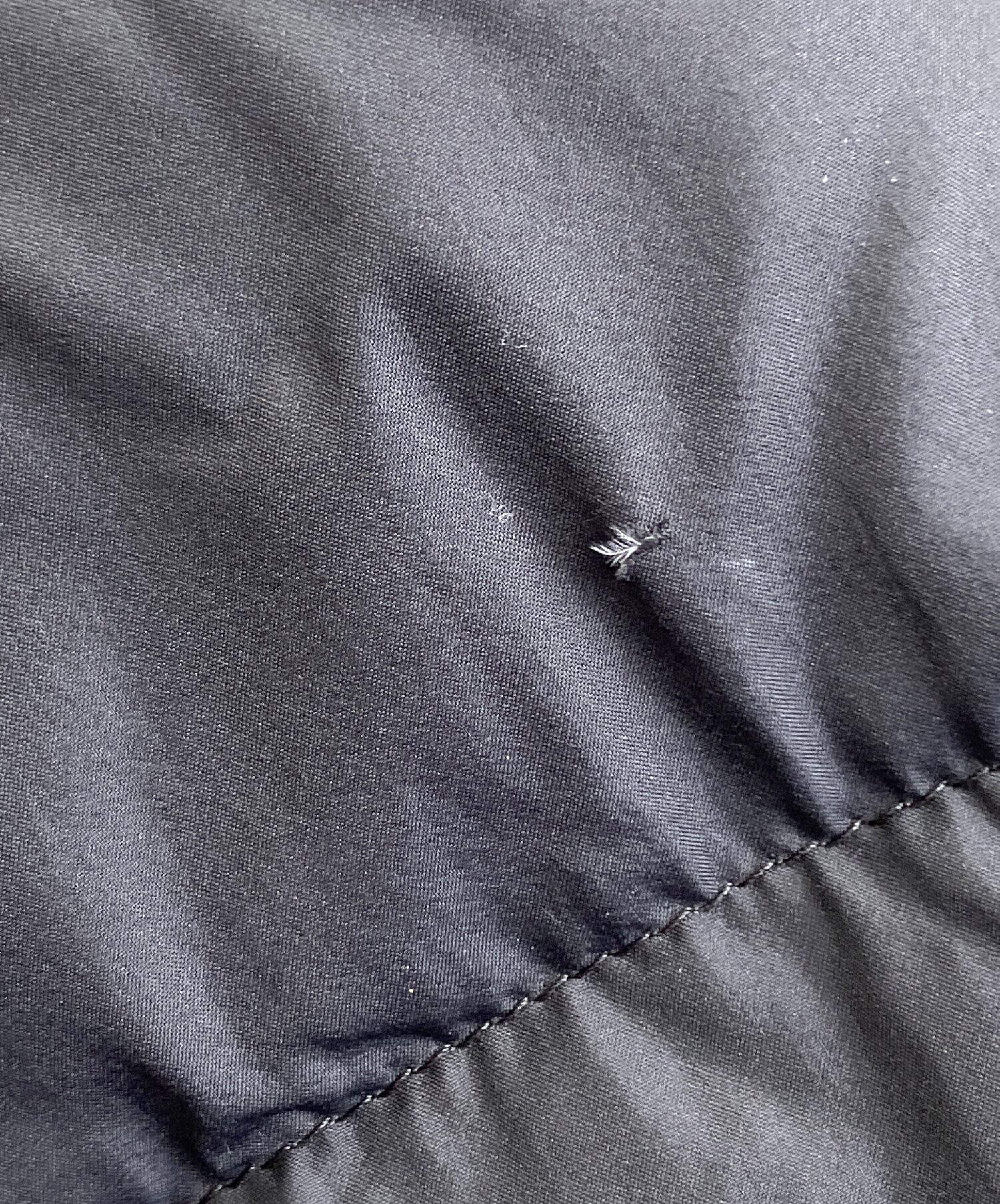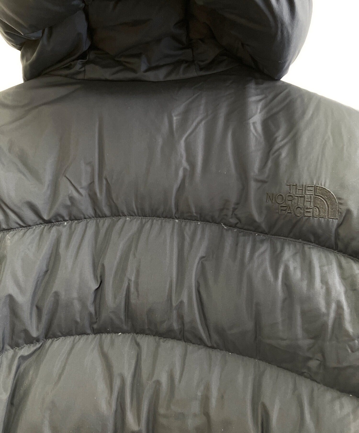 • THE NORTH FACE(ザ ノース フェイス)THE NORTH FACE (ザ ノース フェイス) ダウンジャケット ブラック サイズ:Lの古着・服飾アイテム 後ろ側所々にダウン漏れ、ほつれ有