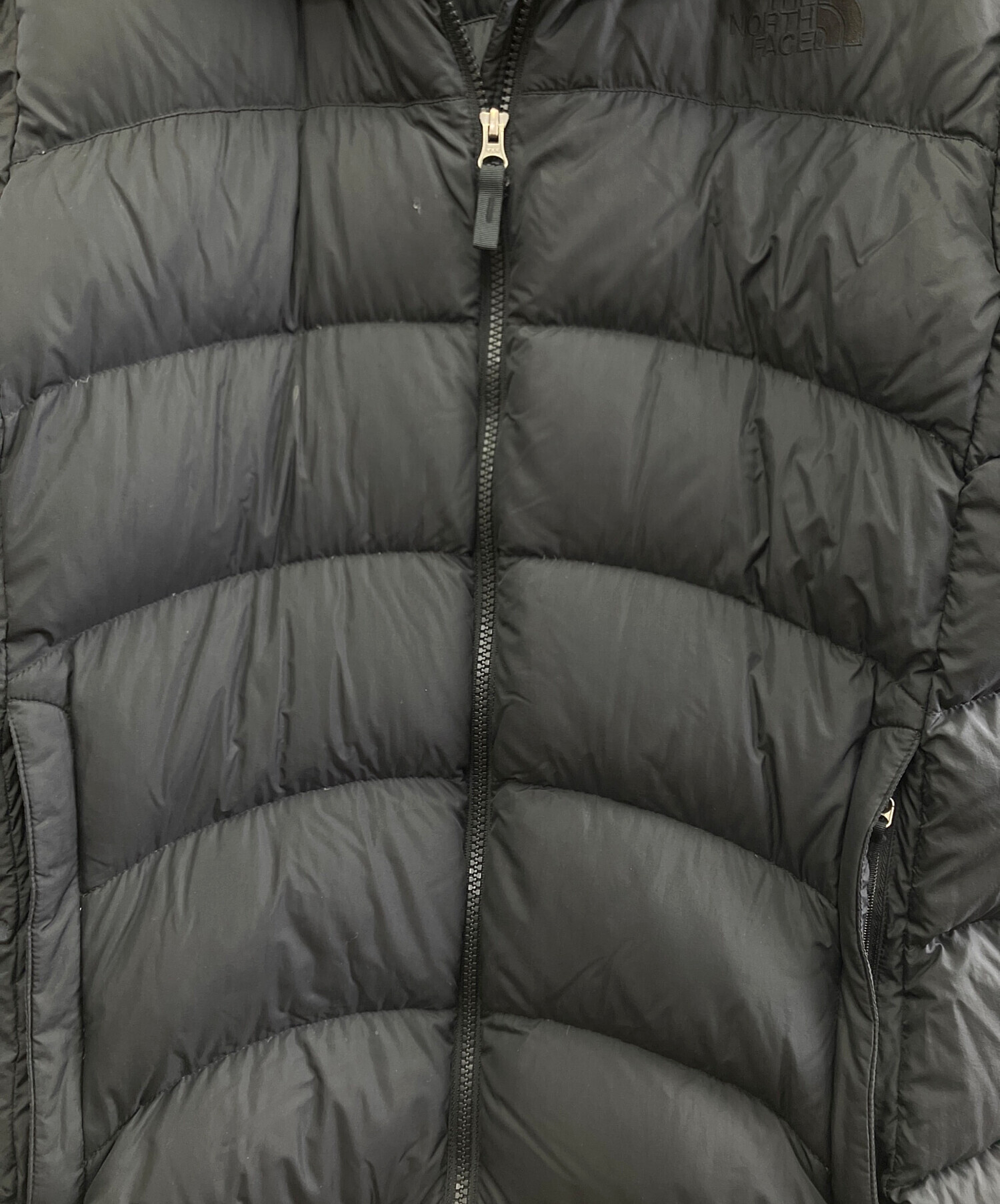 • THE NORTH FACE(ザ ノース フェイス)THE NORTH FACE (ザ ノース フェイス) ダウンジャケット ブラック サイズ:Lの古着・服飾アイテム 右胸に汚れ有(ダウン漏れ部分の左下)