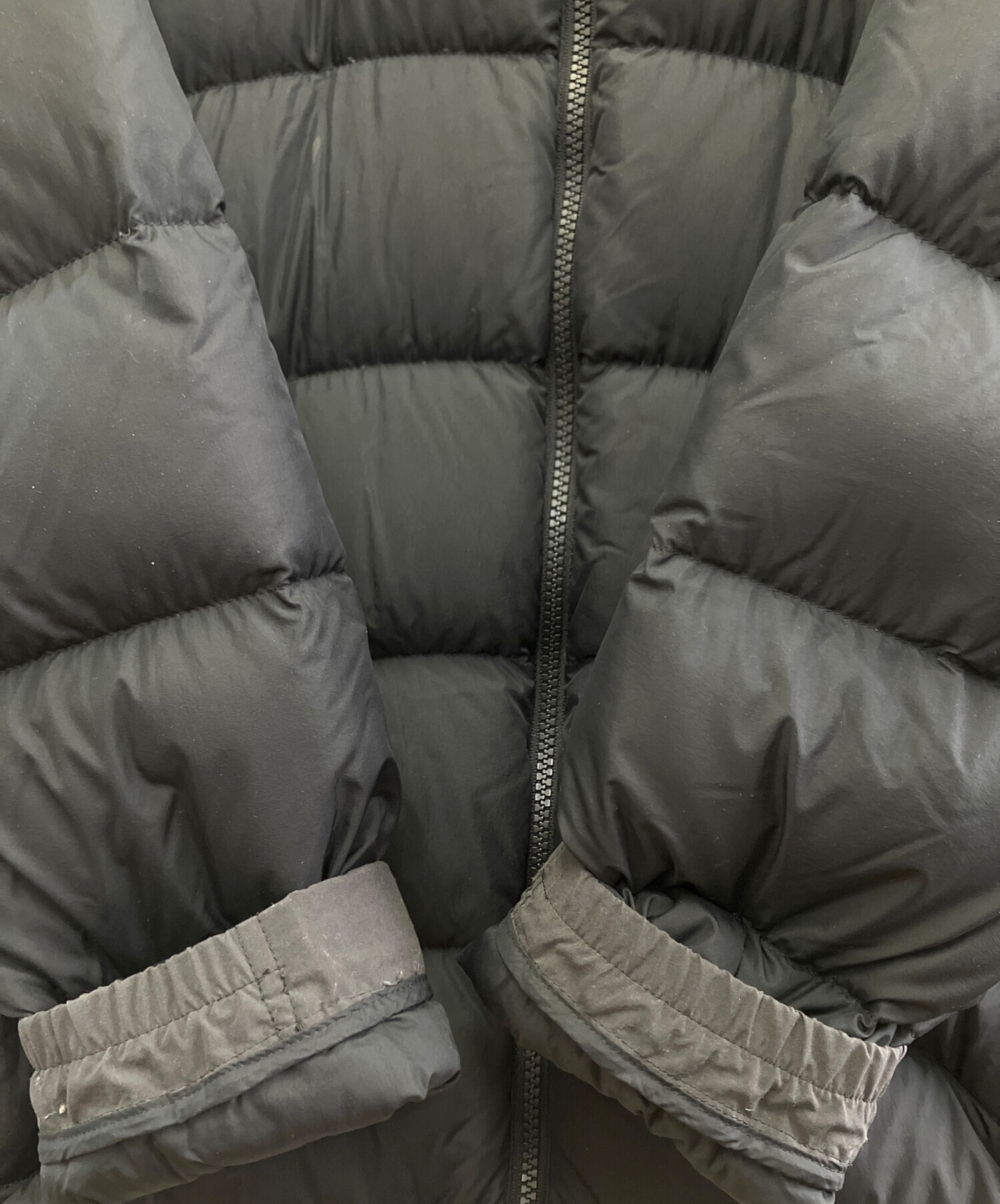 • THE NORTH FACE(ザ ノース フェイス)THE NORTH FACE (ザ ノース フェイス) ダウンジャケット ブラック サイズ:Lの古着・服飾アイテム 左腕ダウン漏れ有
