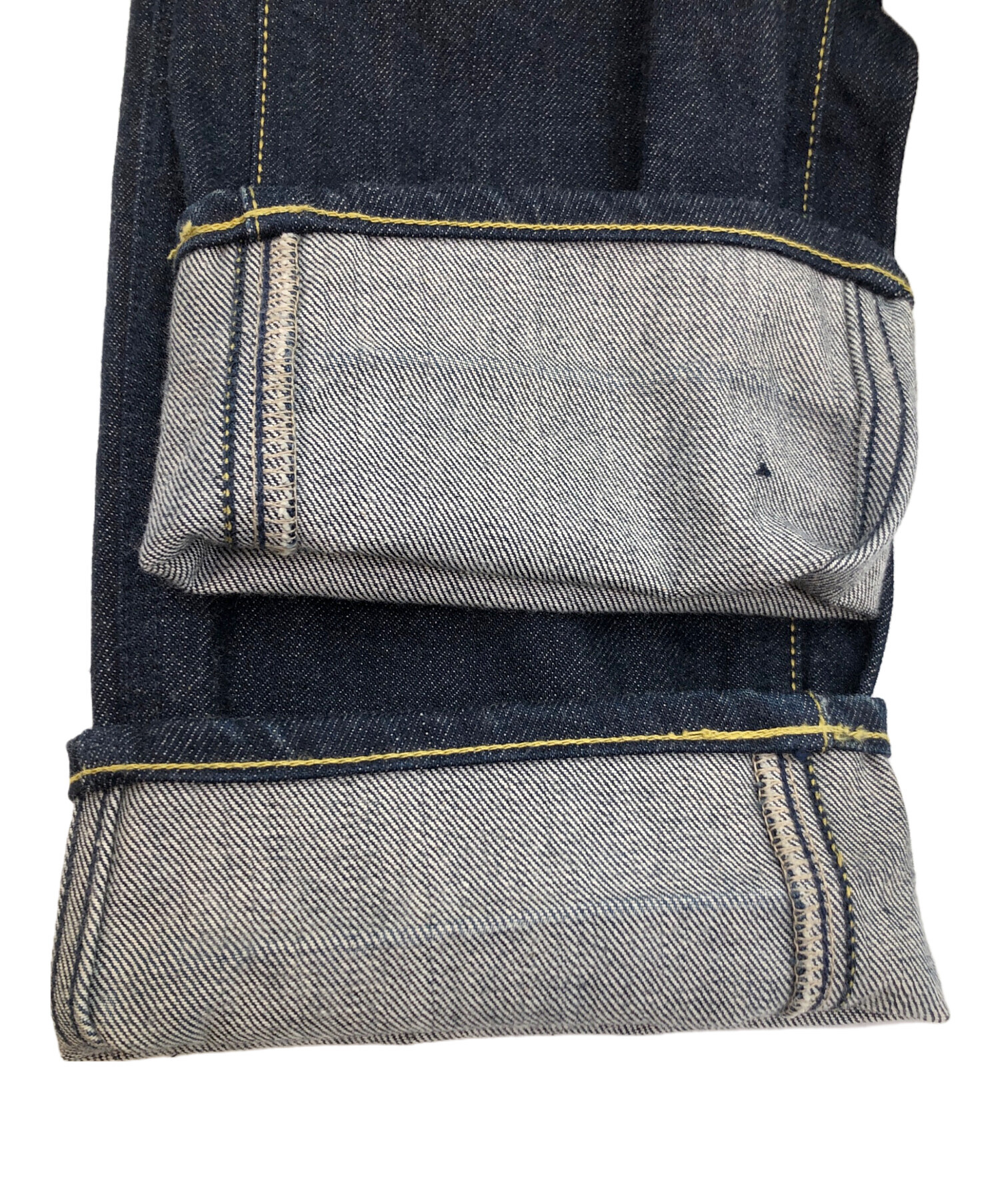 • BLUE BLUE(ブルーブルー)BLUE BLUE (ブルーブルー) デニムパンツ インディゴブルー サイズ:SIZE W33×L33の古着・服飾アイテム 両裾裏、折り目・色移りあり
