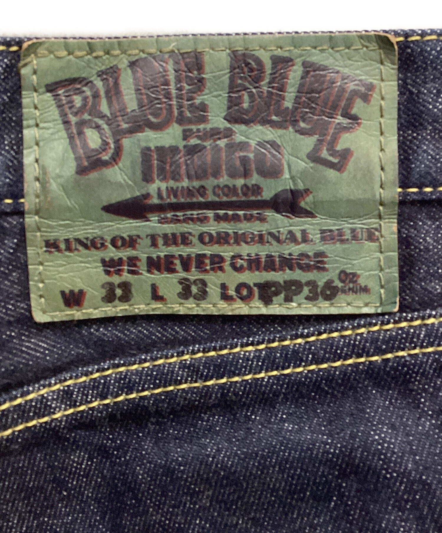 • BLUE BLUE(ブルーブルー)BLUE BLUE (ブルーブルー) デニムパンツ インディゴブルー サイズ:SIZE W33×L33の古着・服飾アイテム 革タグ、ヨゴレ・スレあり