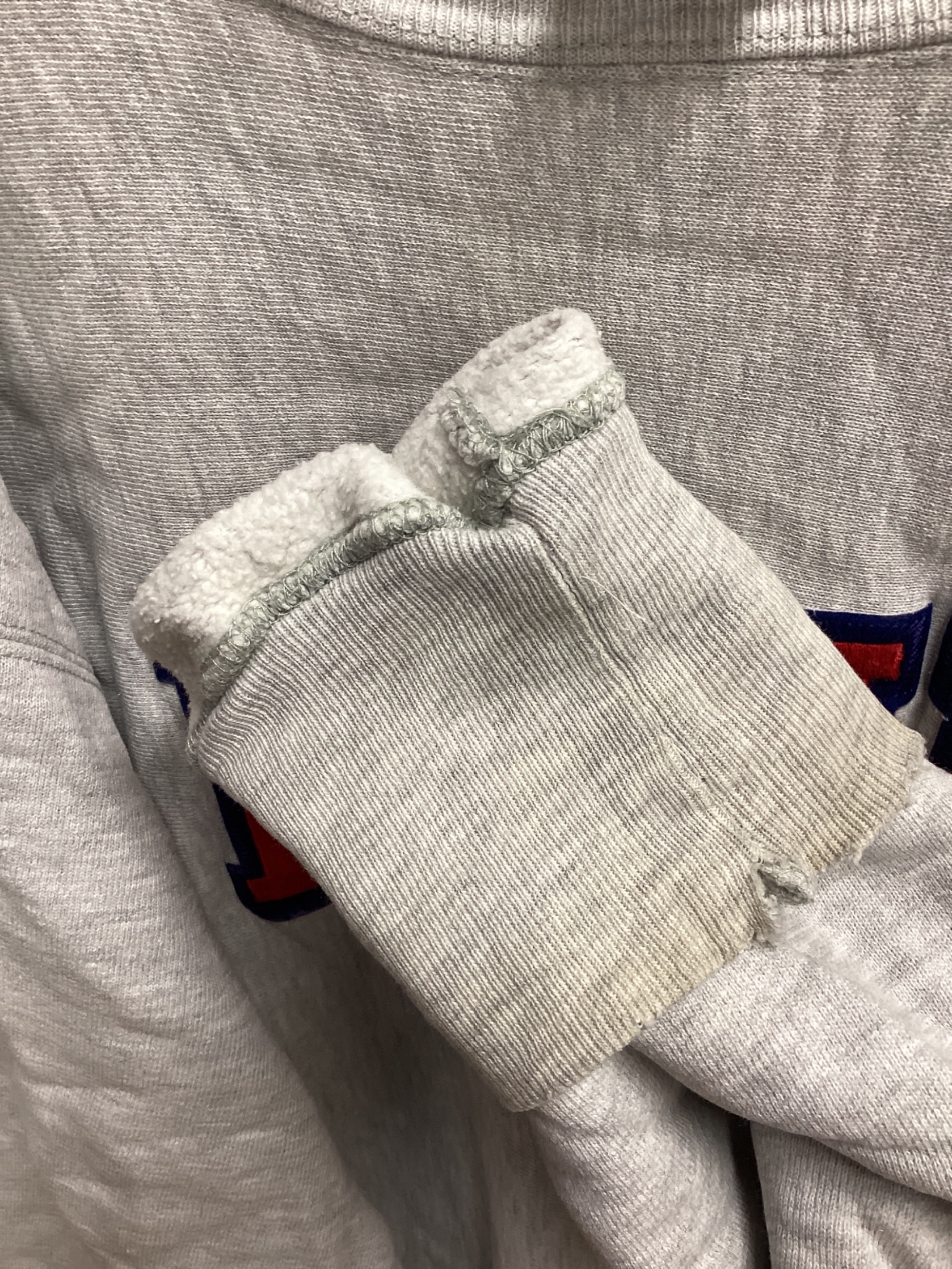 • Champion REVERSE WEAVE(チャンピオン リバース ウィーブ)Champion REVERSE WEAVE (チャンピオン リバース ウィーブ) スウェット グレー サイズ:SIZE XXLの古着・服飾アイテム 袖口部、ヨゴレ・ヤブレ・軽い変色あり