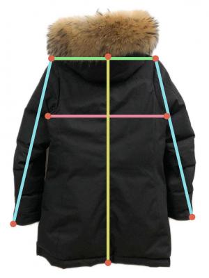 | 素材 | 表地: ポリエステル100% 下側: ポリウレタンラミネート 裏地: ナイロン 100% 詰物: ダウン 90% フェザー 10% 毛皮: ラクーン 100% |